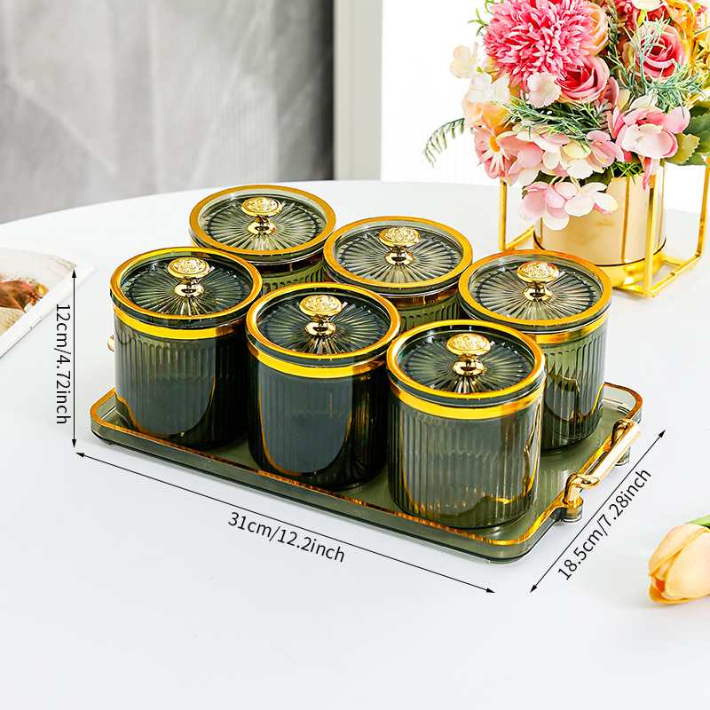 • 과일 녹색 원형 캔 6그리드 플레이트-T 골드 손잡이