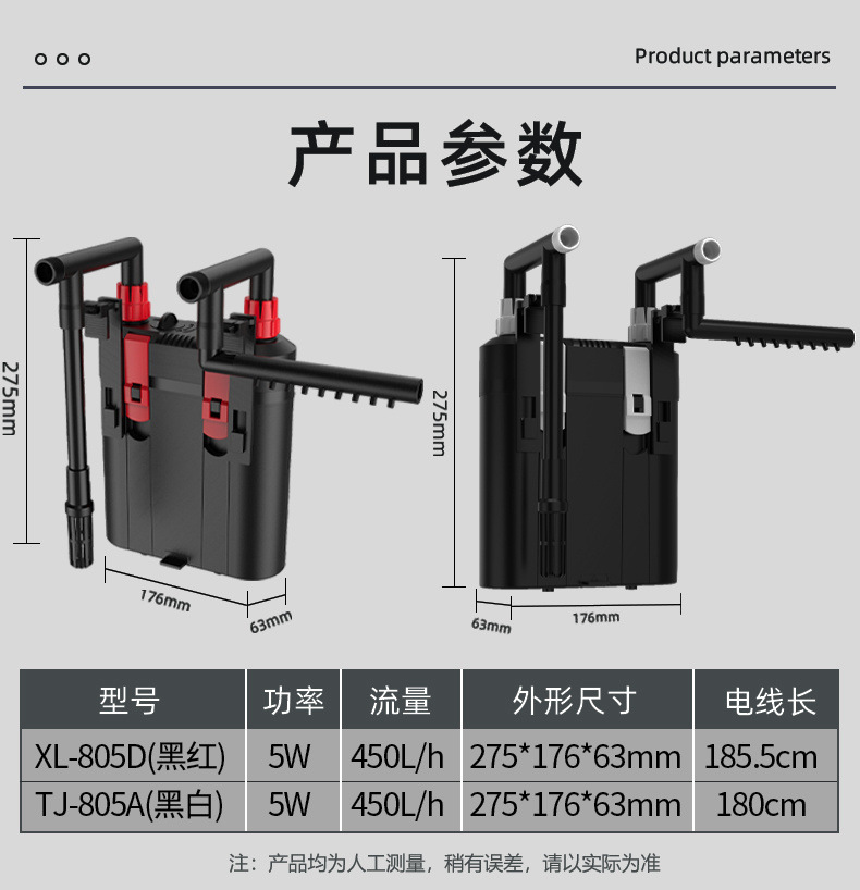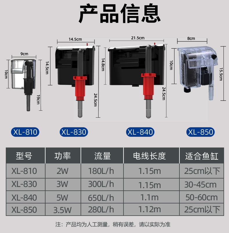 • 벽걸이 필터 XL810은 25cm 이하 수조에 적합합니다.