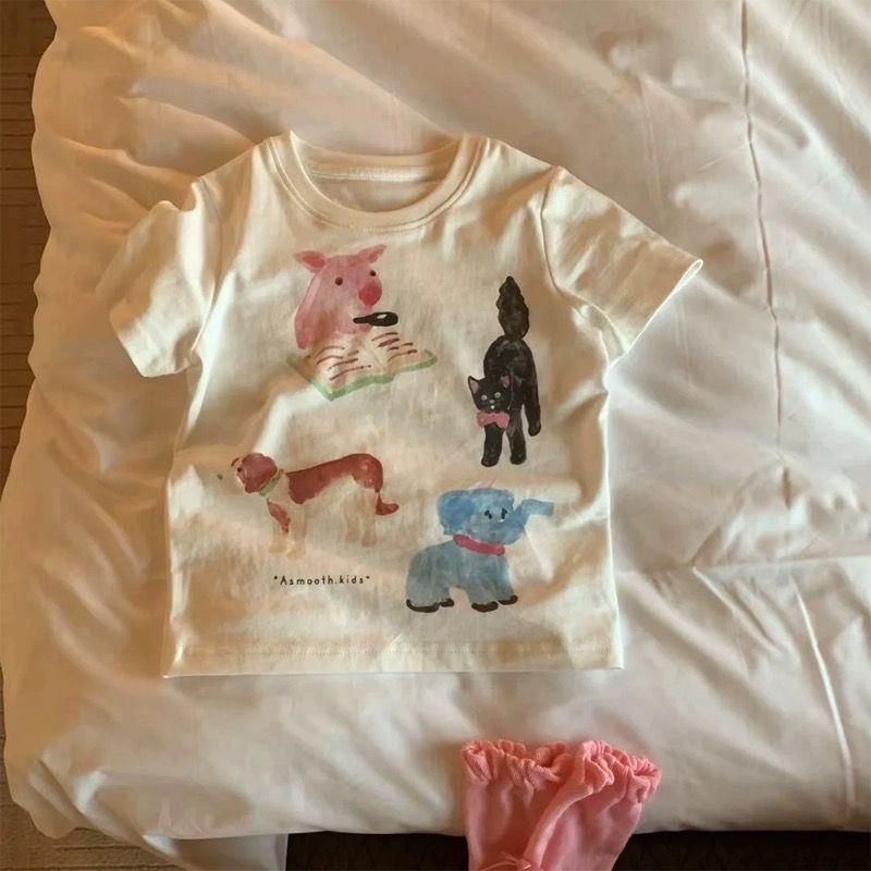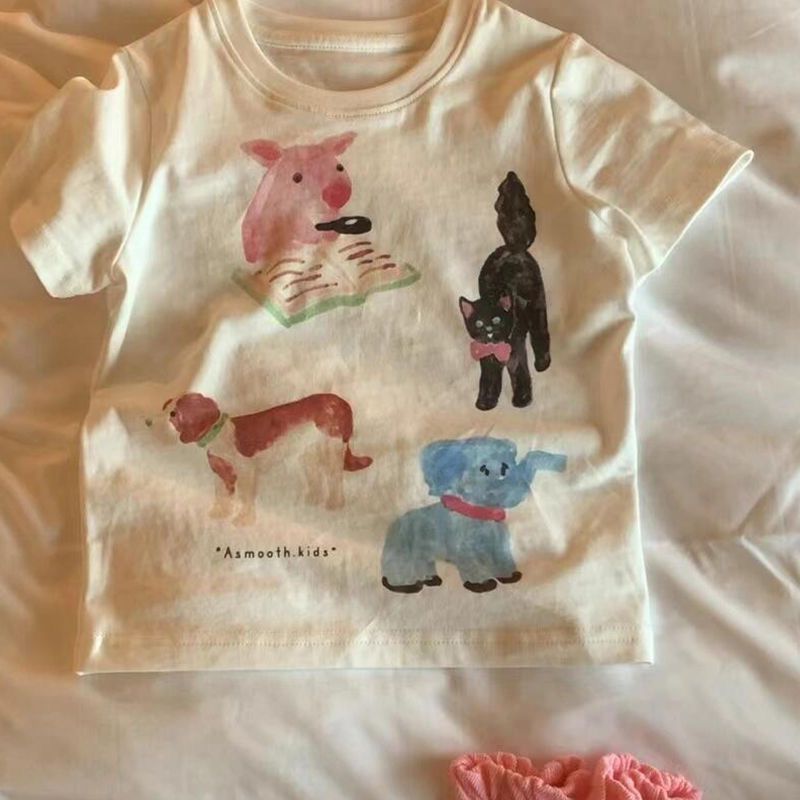 여름 신상품 중소형 아동용 패셔너블 상의, 남아 여아용 만화 캐릭터 아기 면 베이스 셔츠, 아동용 반팔 티셔츠, 아동복스토어 가기