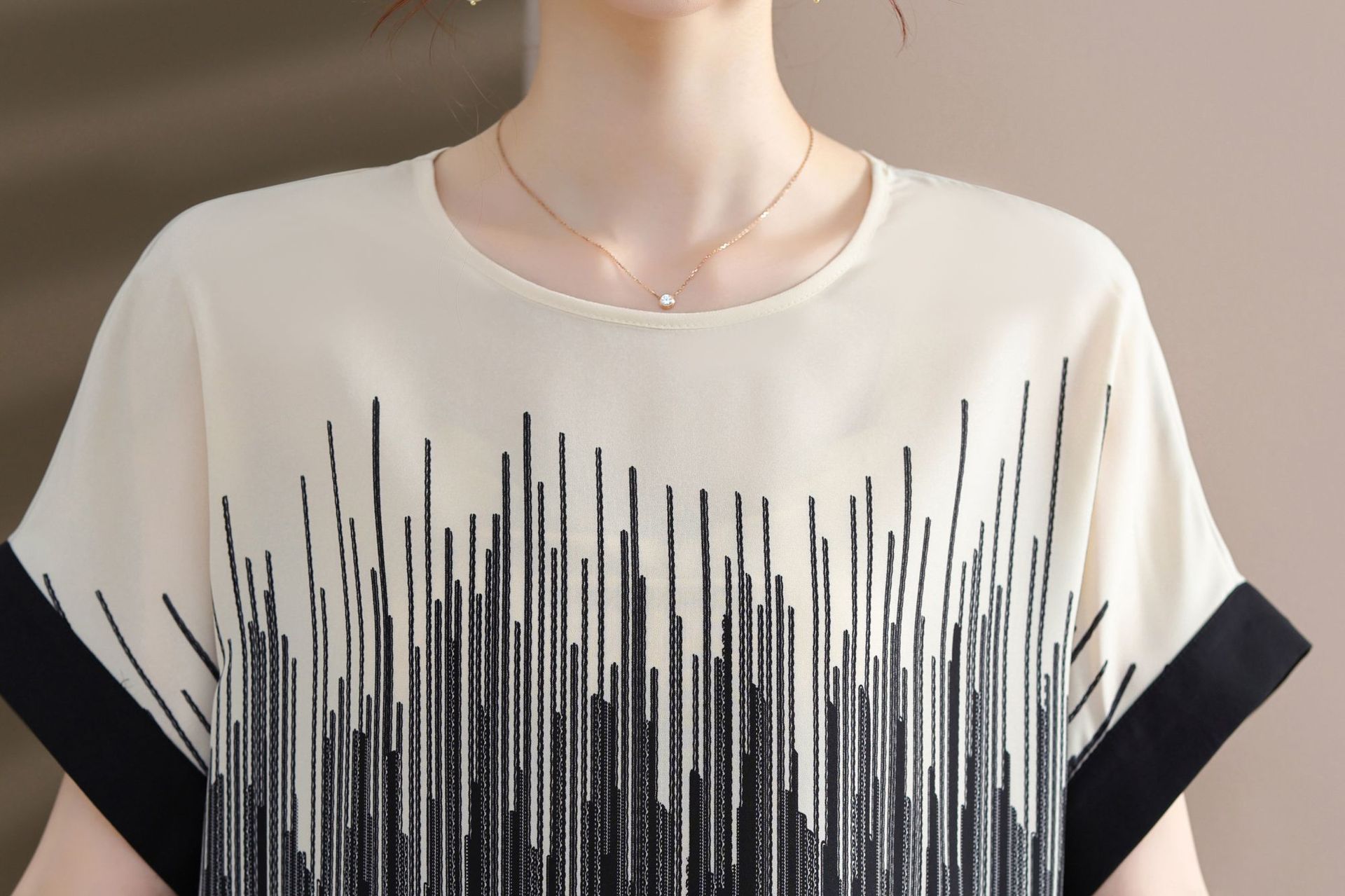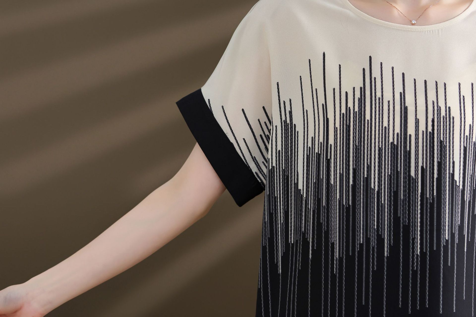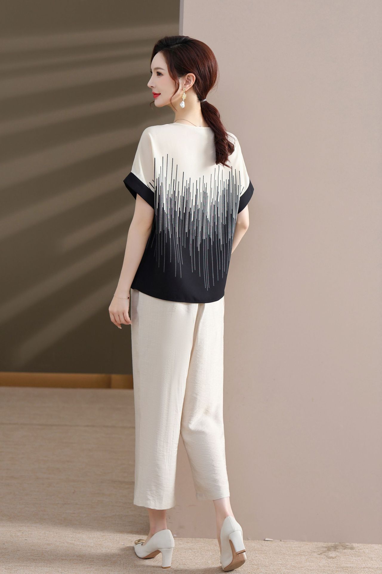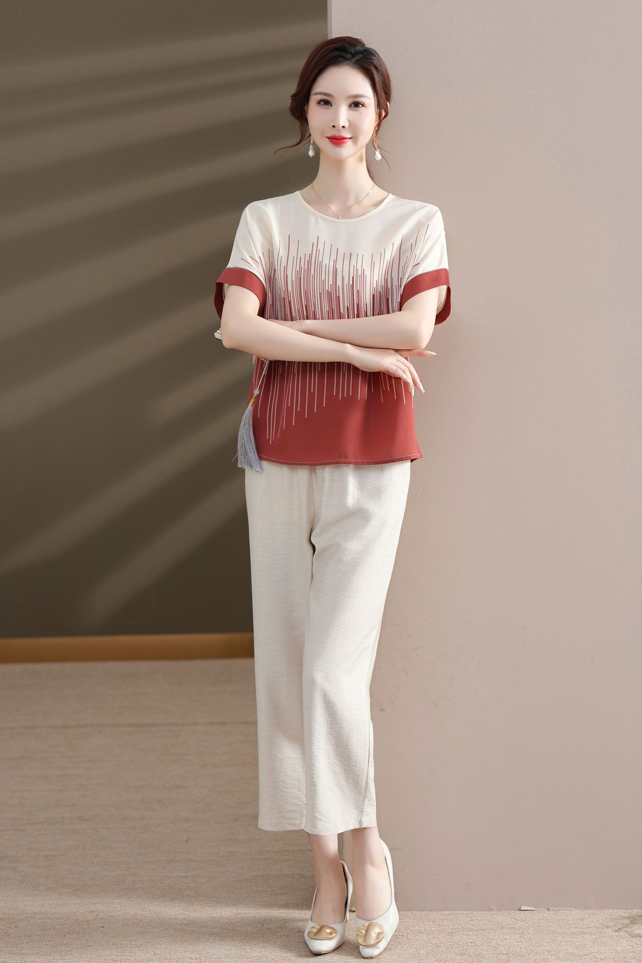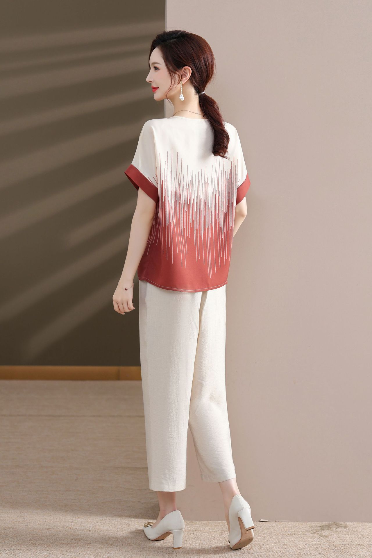 중년 어머니 여름 세트 2025 새로운 외국 스타일 중년 여성 반팔 티셔츠 느슨한 탑 투피스 세트