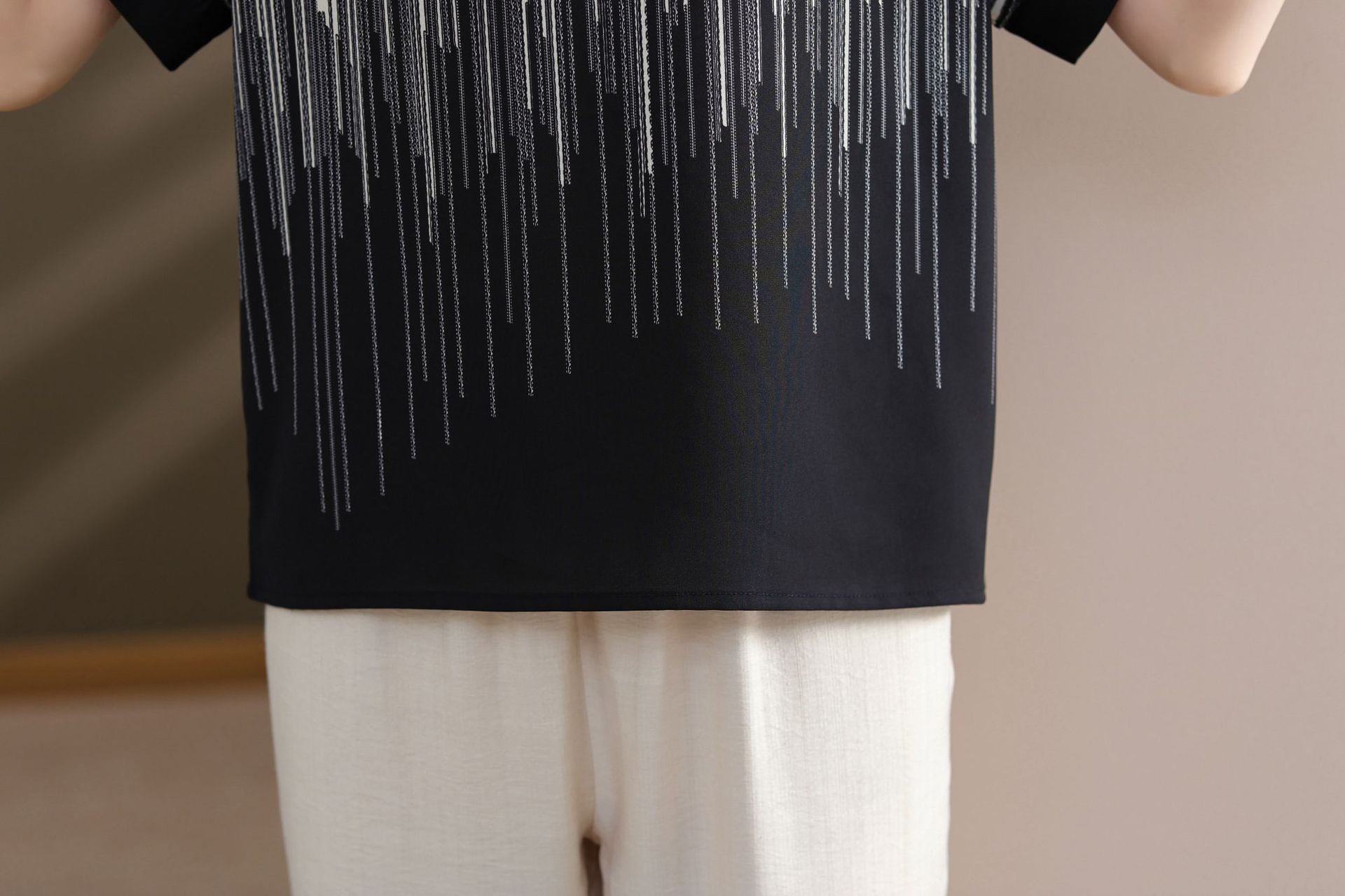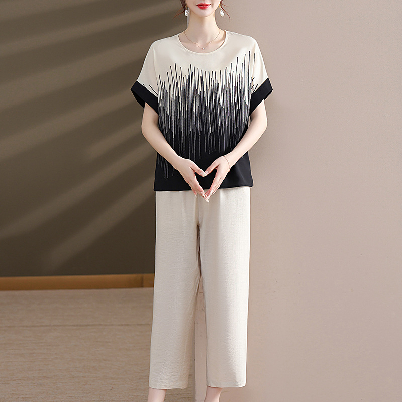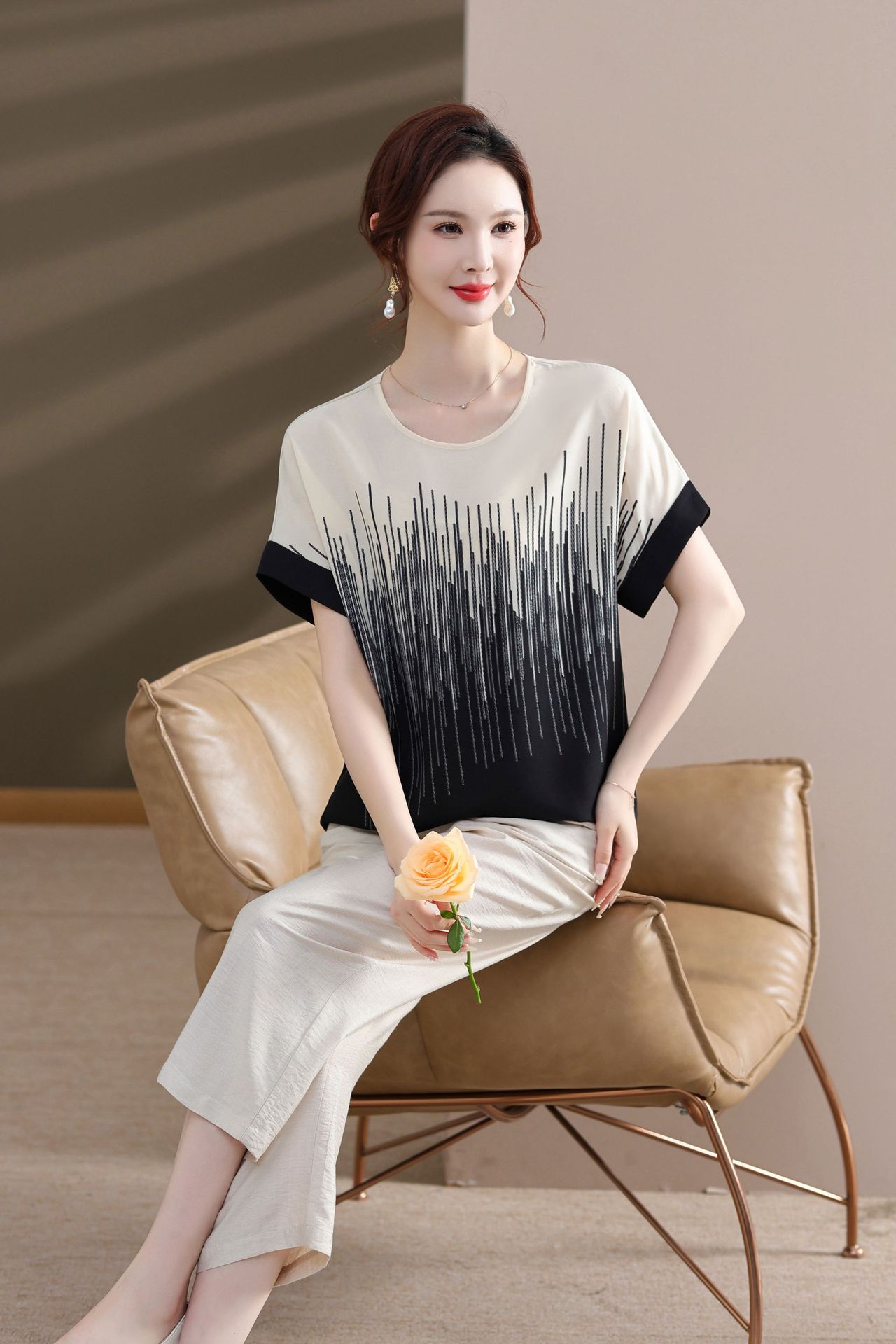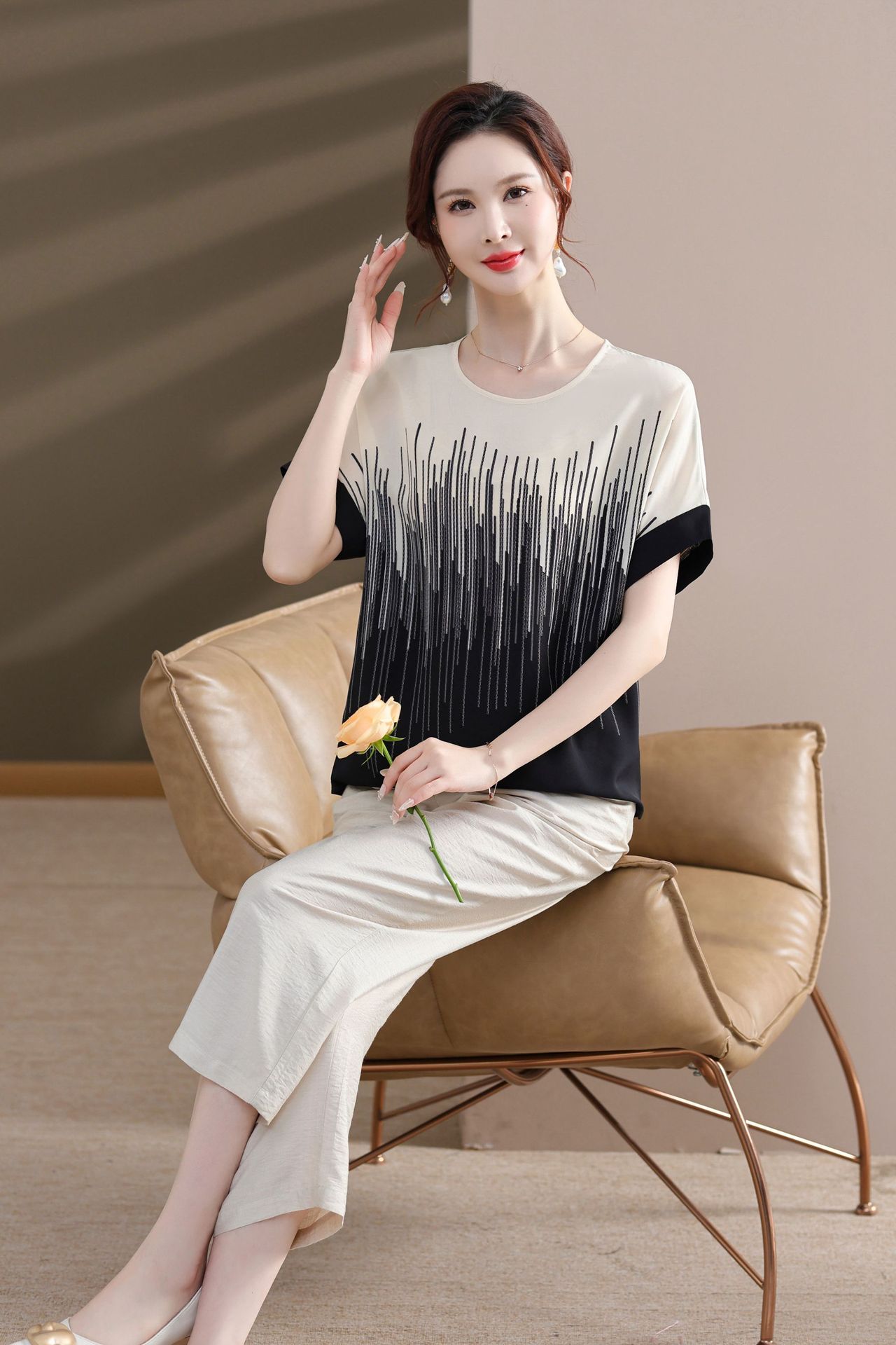 중년 어머니 여름 세트 2025 새로운 외국 스타일 중년 여성 반팔 티셔츠 느슨한 탑 투피스 세트스토어 가기