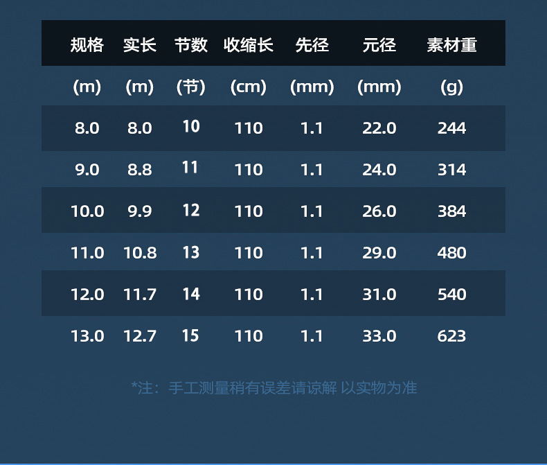 • [초경량 모델] 19곡 11m [중장 섹션] 약간 단단함 + 처음 두 섹션 약간 부드러운 가방 + 로드 가방