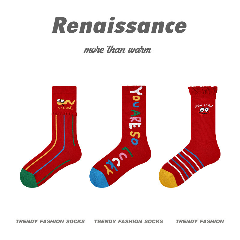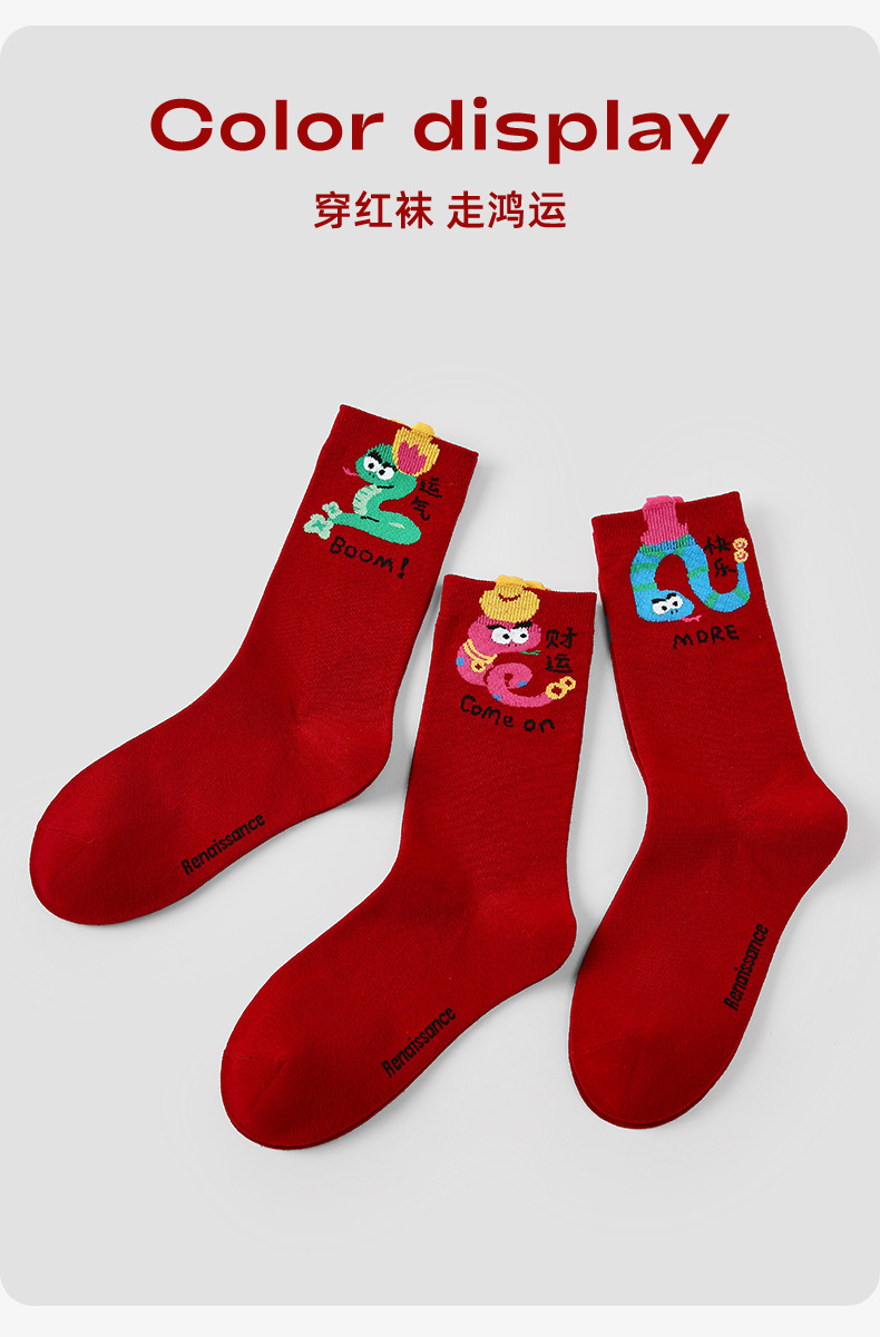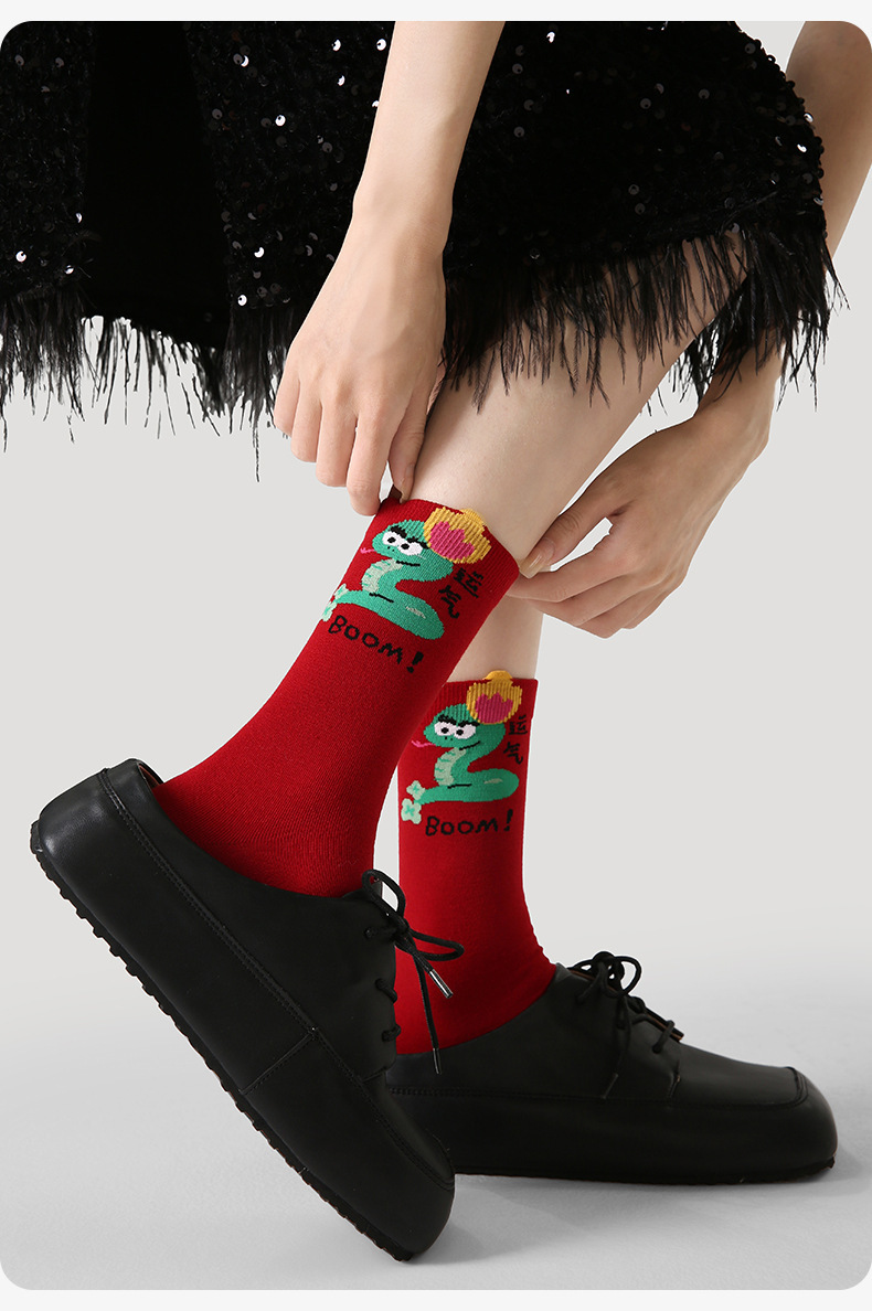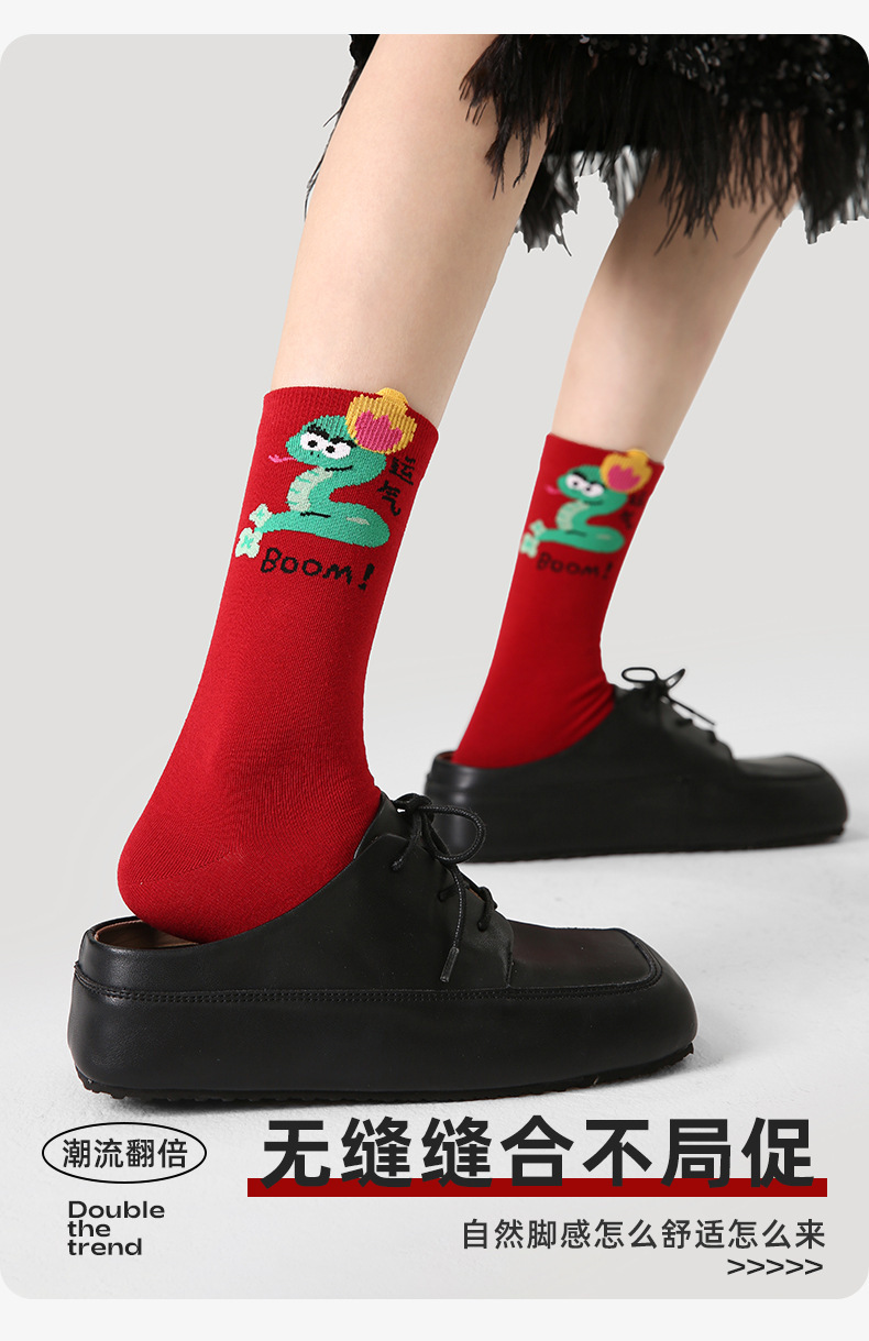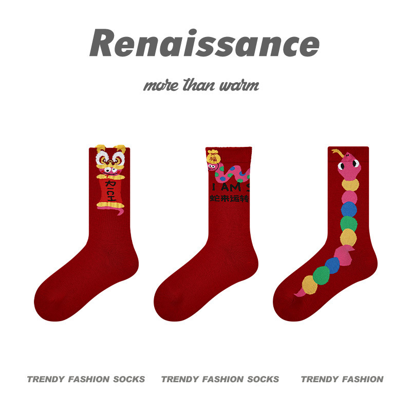 르네상스 뱀의 해 동물의 해 양말 여성 가을, 겨울 중간 튜브 양말 2025 신년 선물 긴면 양말스토어 가기