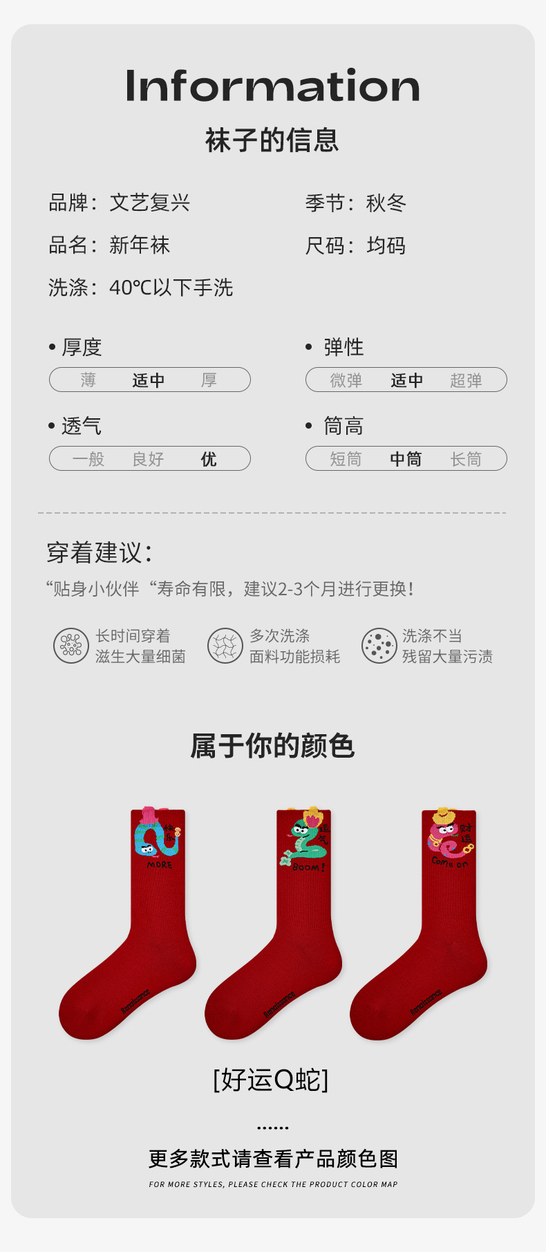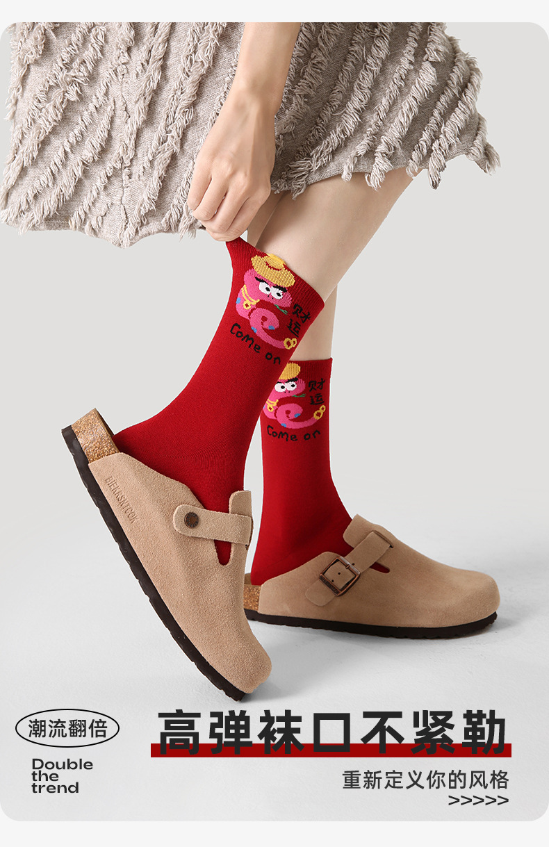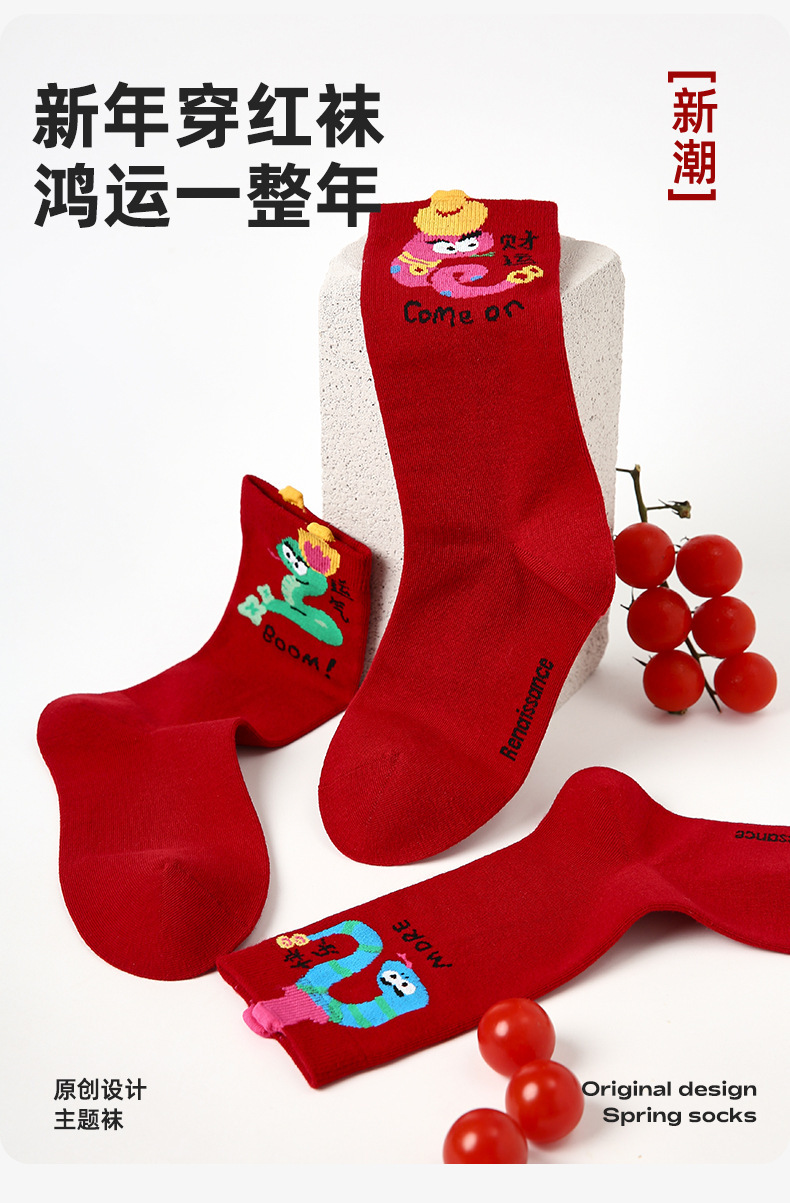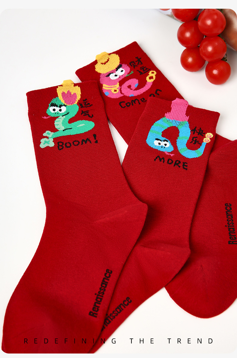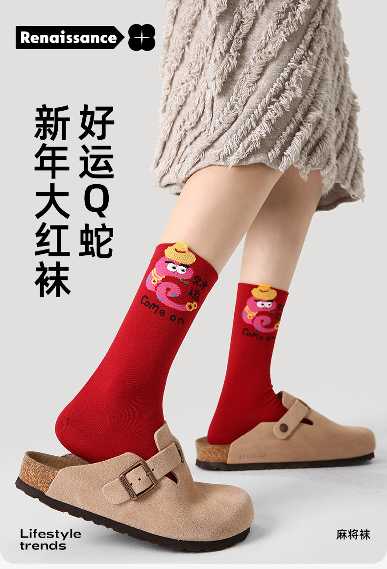 르네상스 뱀의 해 동물의 해 양말 여성 가을, 겨울 중간 튜브 양말 2025 신년 선물 긴면 양말스토어 가기