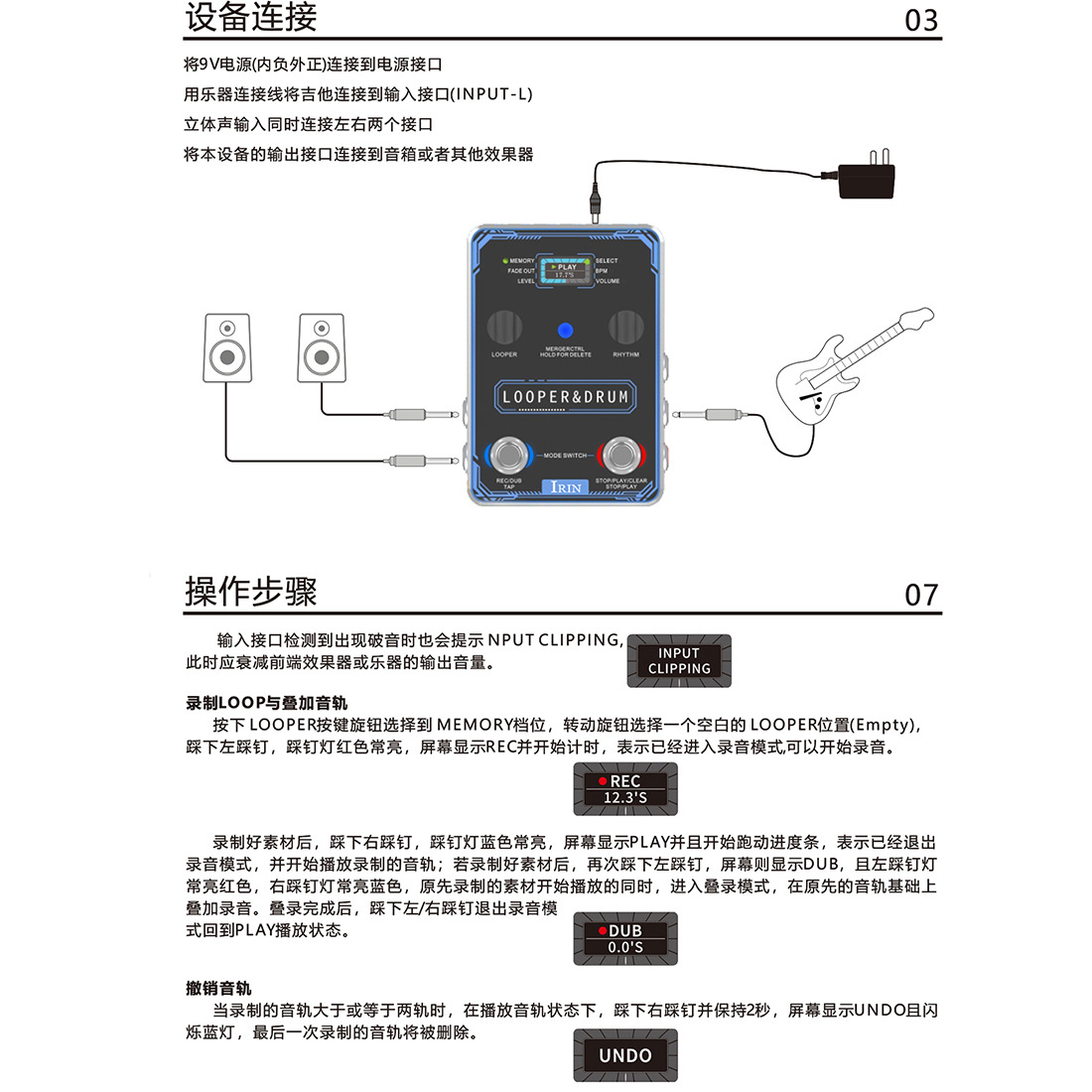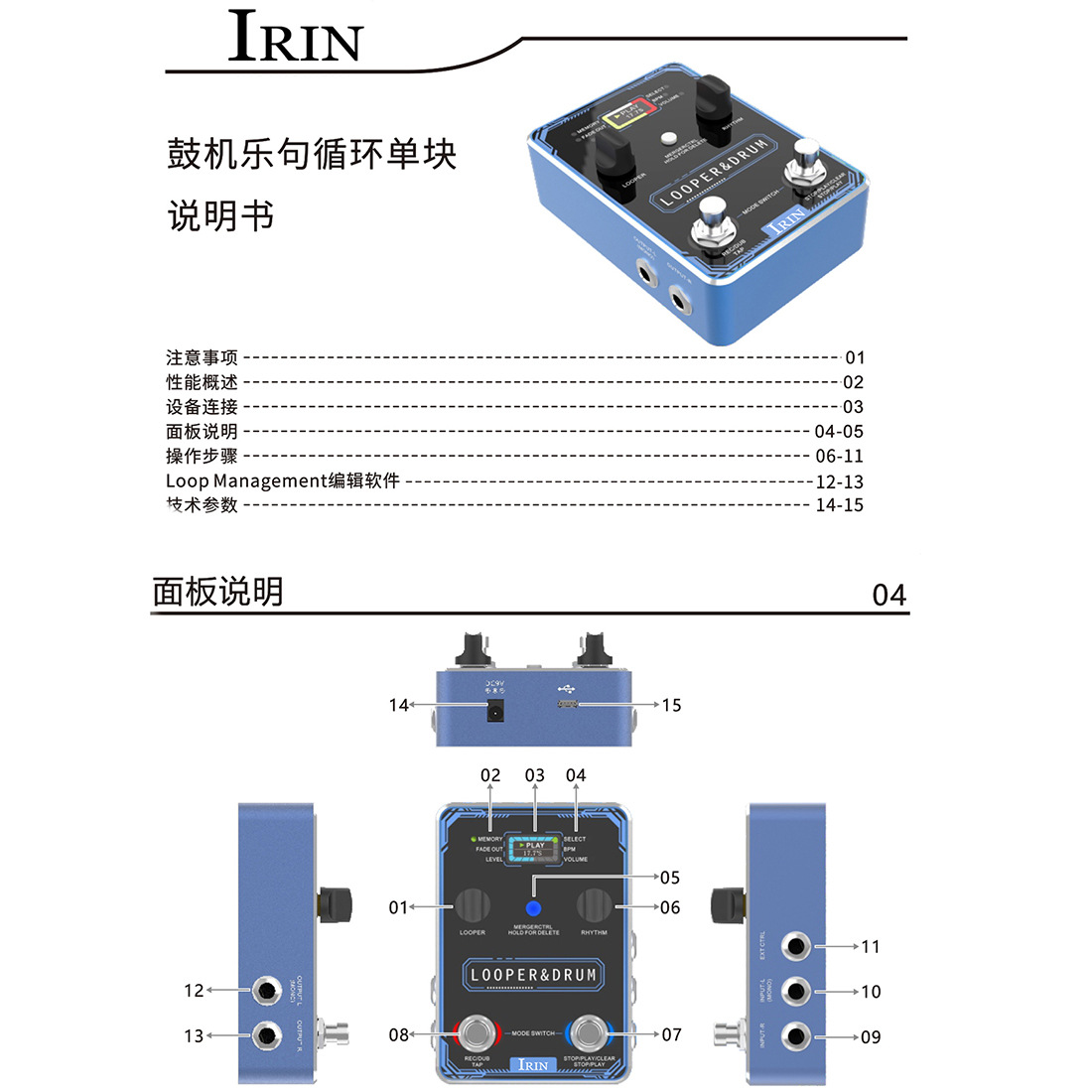 产品名称:IRIN艾琳XS-04鼓机乐句循环单块效果器踏板