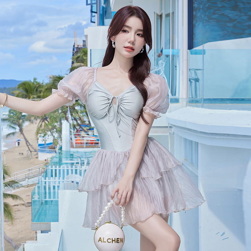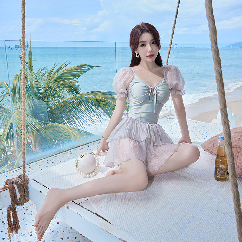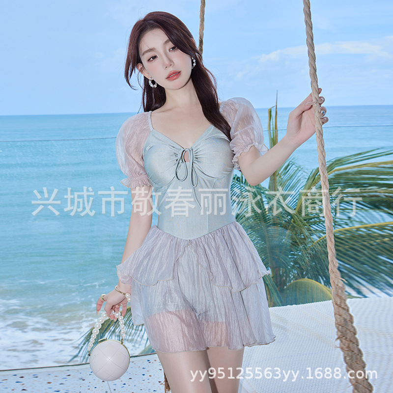 결합 된 온천 수영복 여성의 2024 년 새로운 폭발성 보수적 슬림 배꼽 하이 엔드 스커트 고기 덮개 수영복스토어 가기