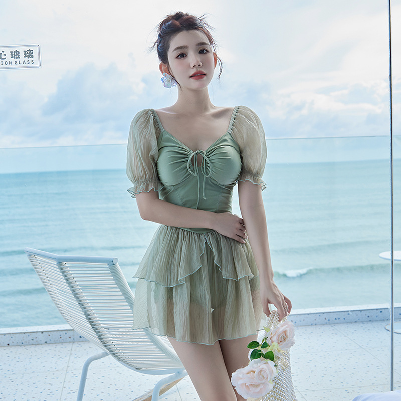 결합 된 온천 수영복 여성의 2024 년 새로운 폭발성 보수적 슬림 배꼽 하이 엔드 스커트 고기 덮개 수영복