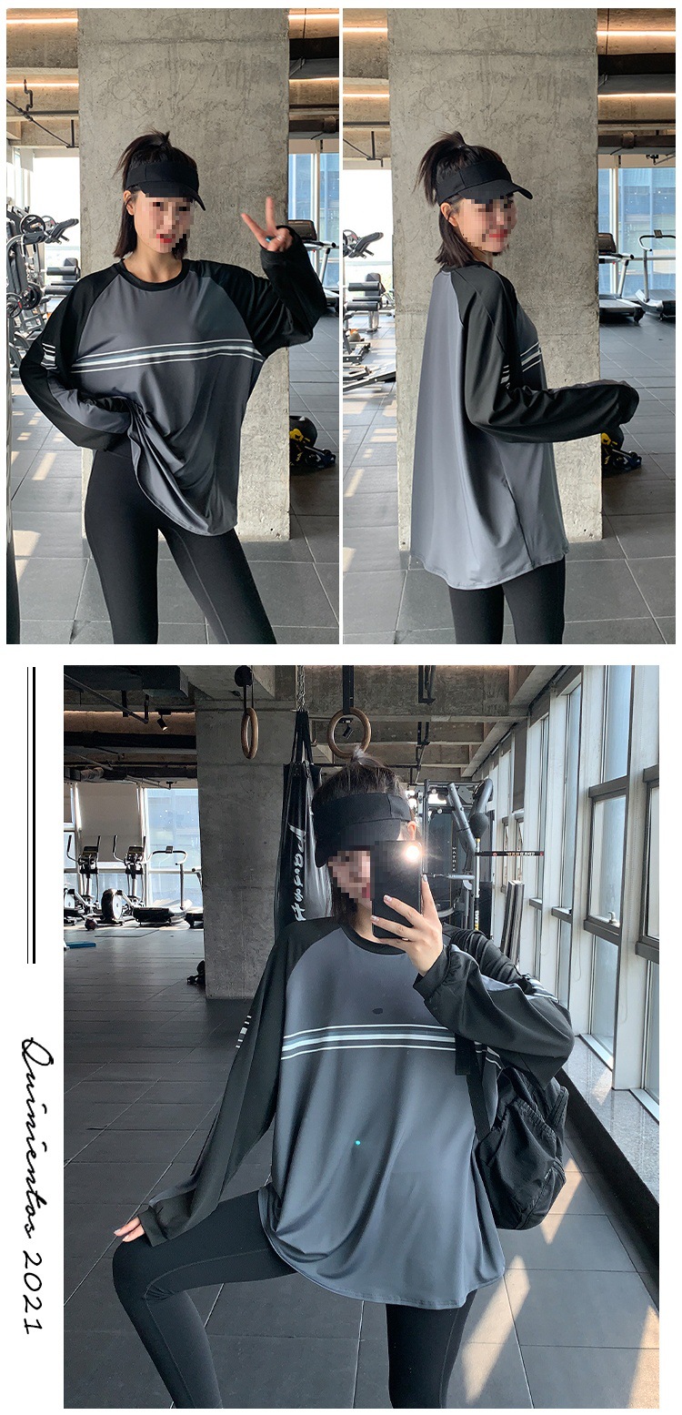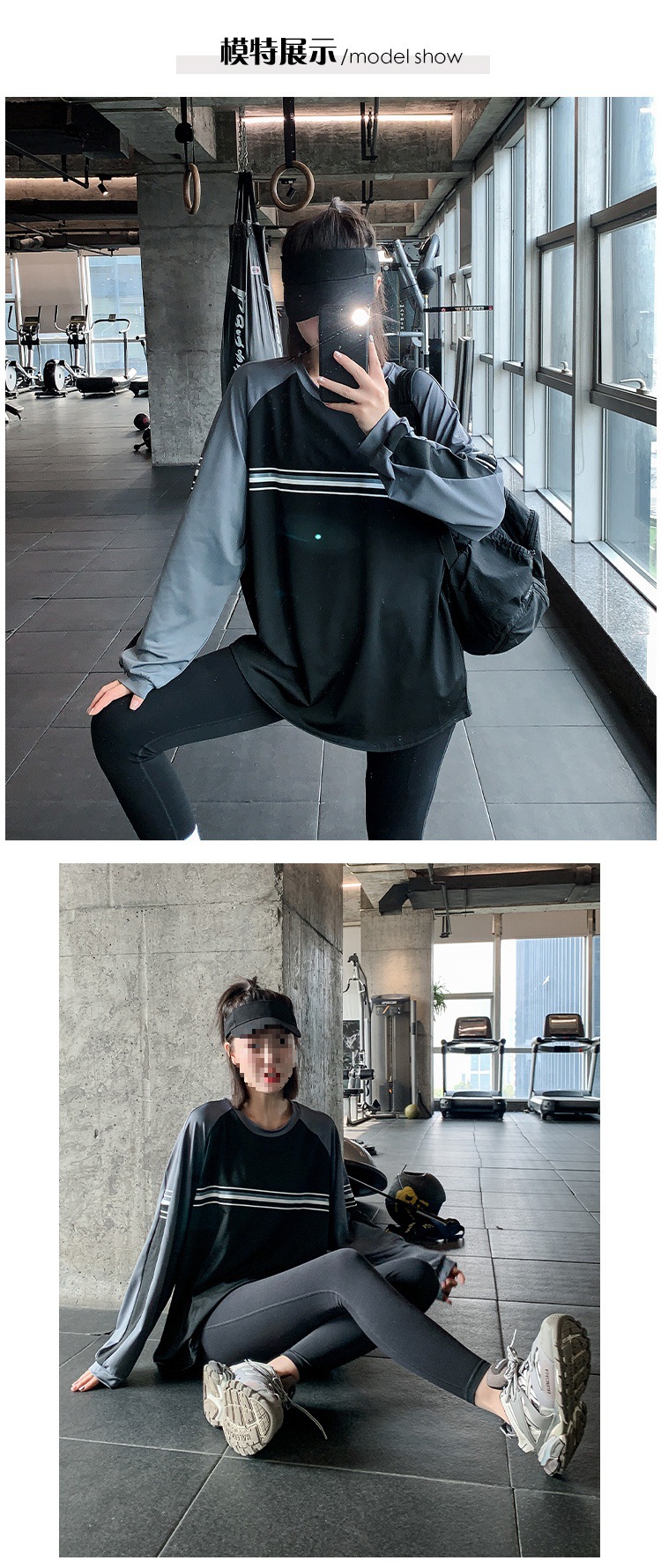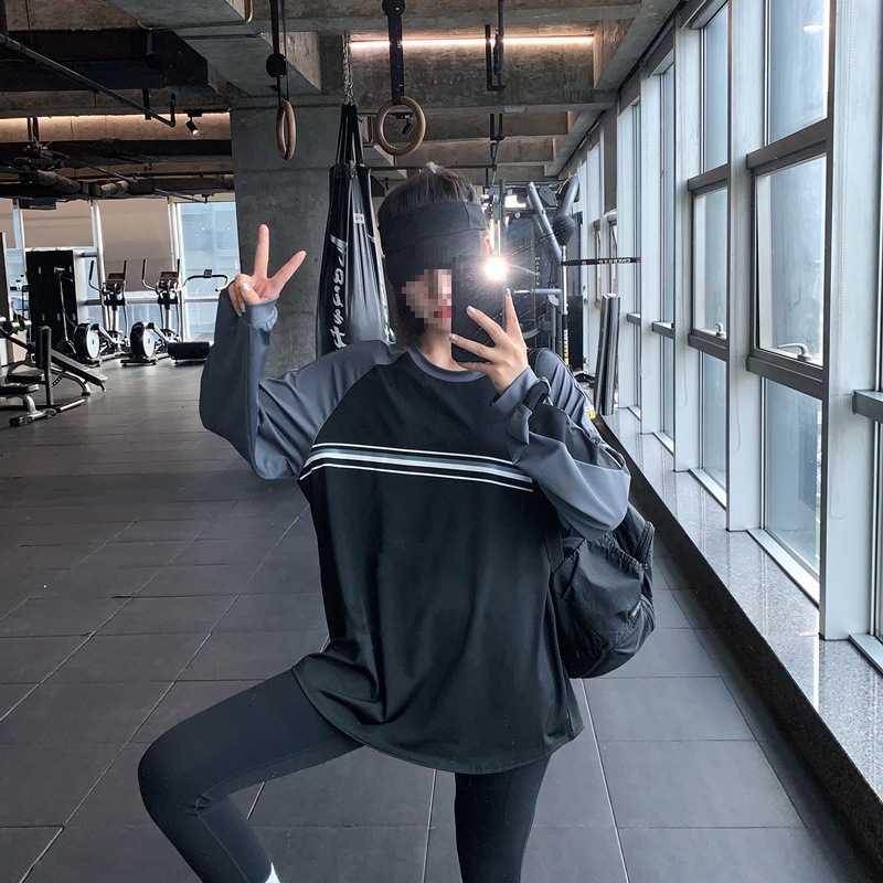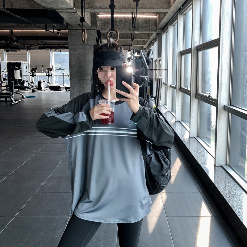 여성을위한 한국 스타일 대형 느슨한 피트니스웨어 봄, 가을 긴팔 탑 속건성 러닝 티셔츠 인터넷 연예인 스타일 스포츠웨어스토어 가기