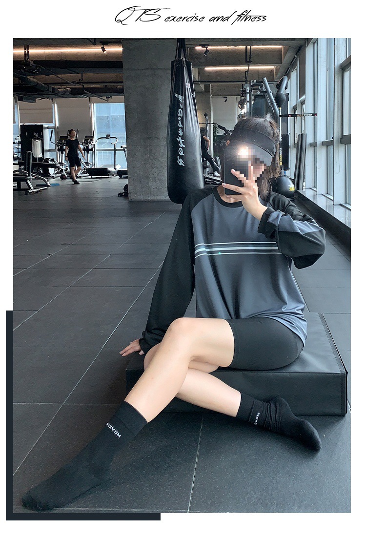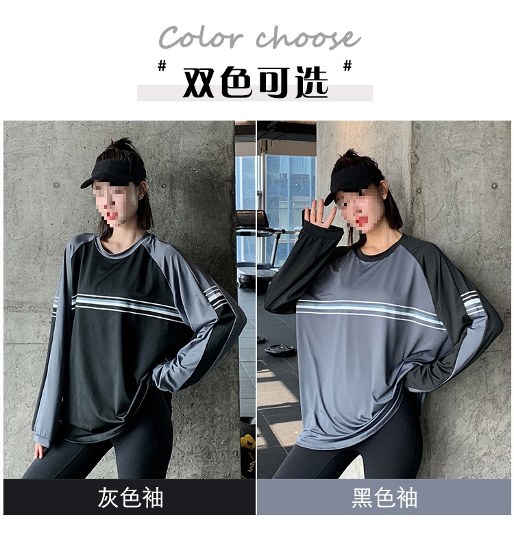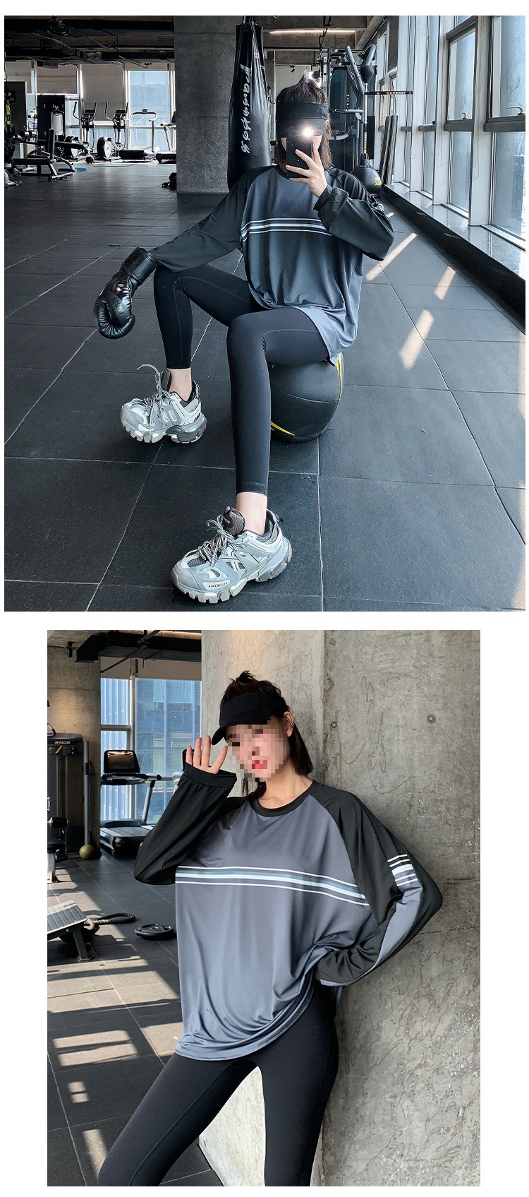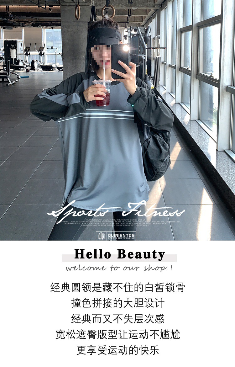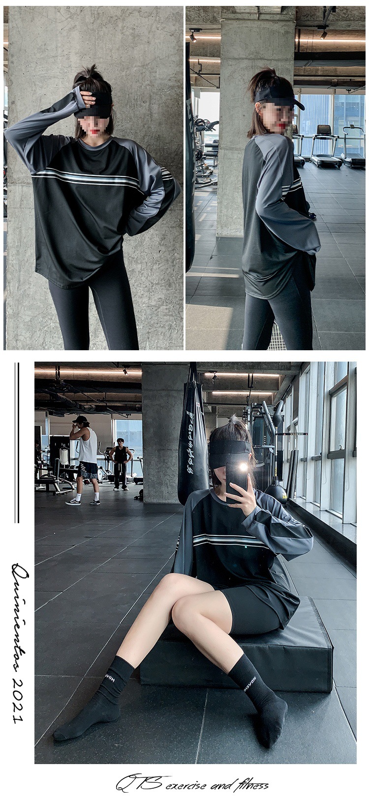 여성을위한 한국 스타일 대형 느슨한 피트니스웨어 봄, 가을 긴팔 탑 속건성 러닝 티셔츠 인터넷 연예인 스타일 스포츠웨어스토어 가기