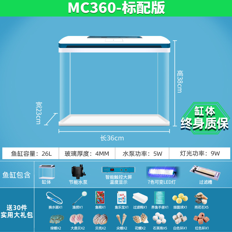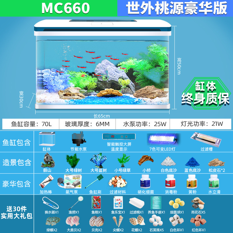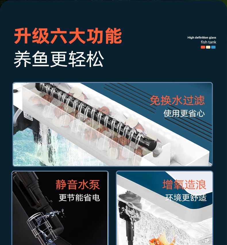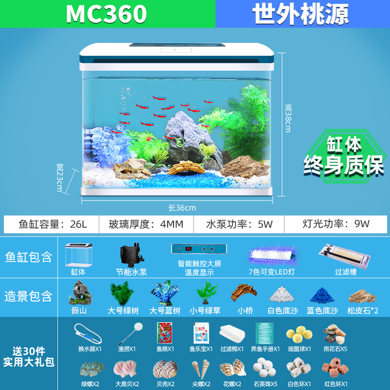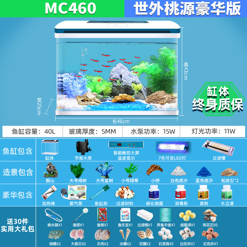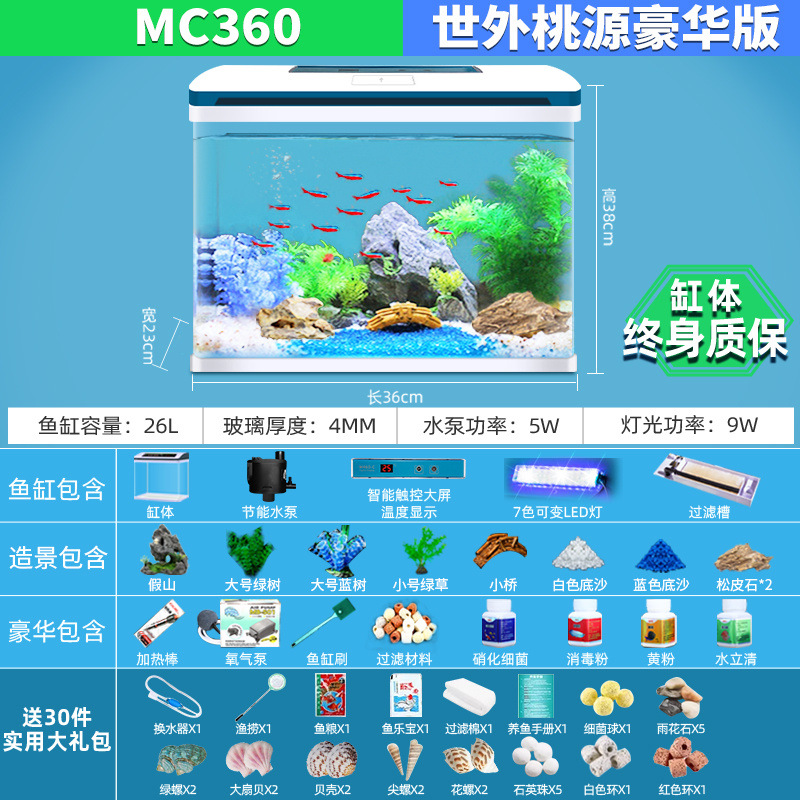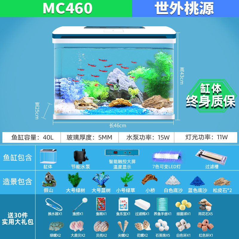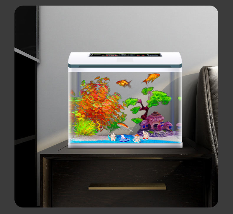 물고기 탱크 거실 가정용 작은 데스크탑 풍경 게으른 물 무료 유리 물고기 탱크 수족관 생태 금붕어 탱크스토어 가기