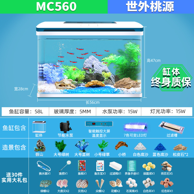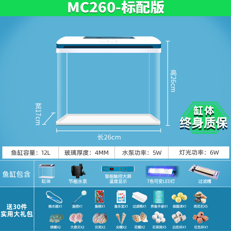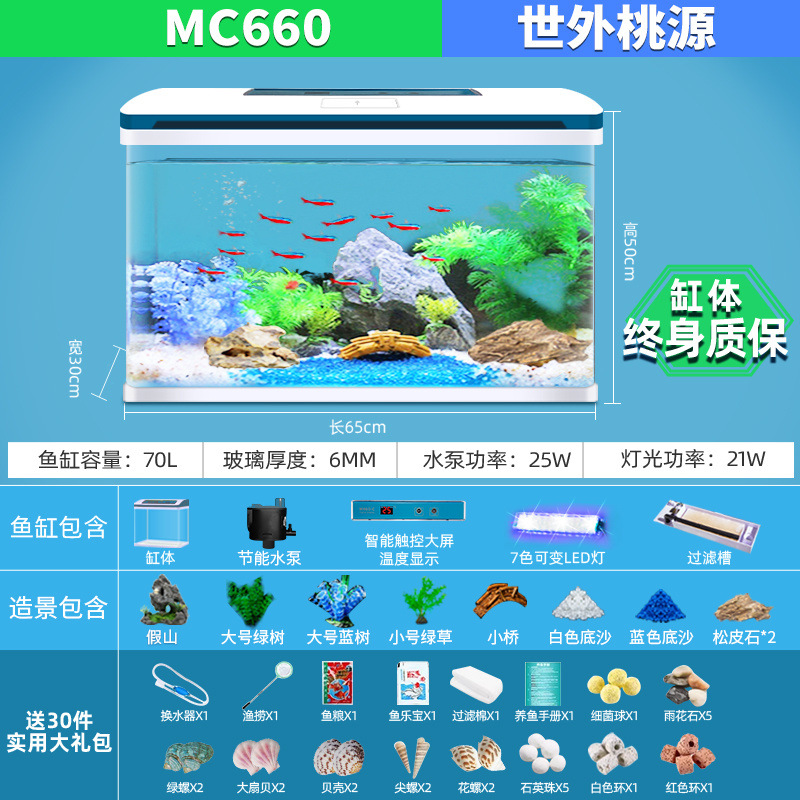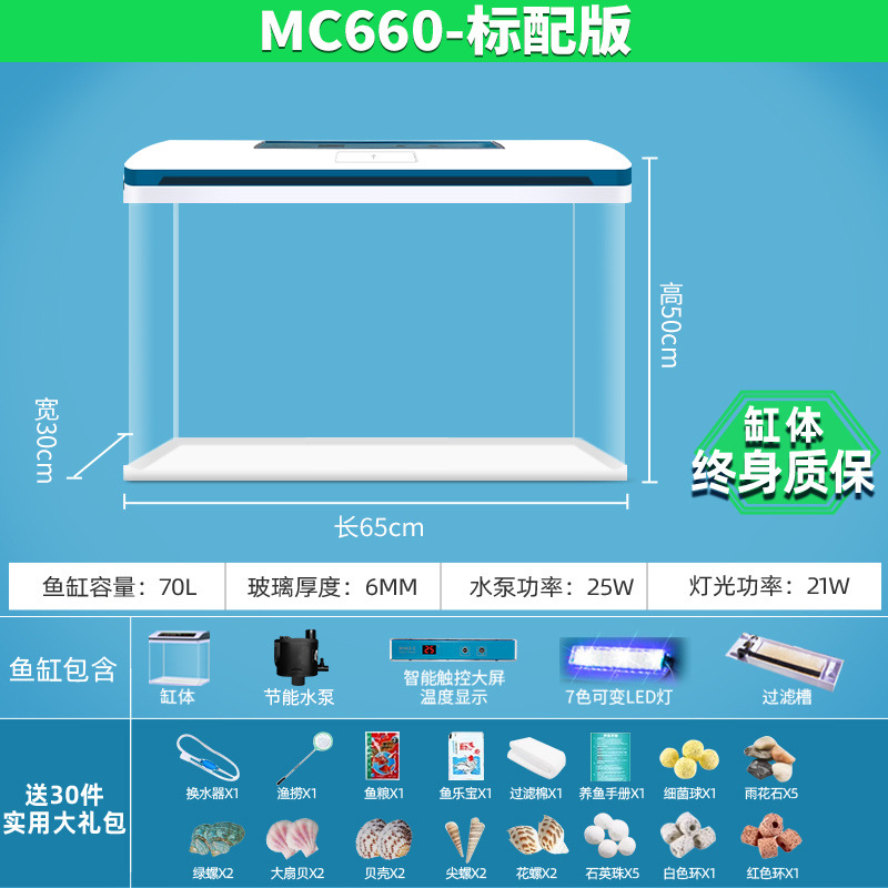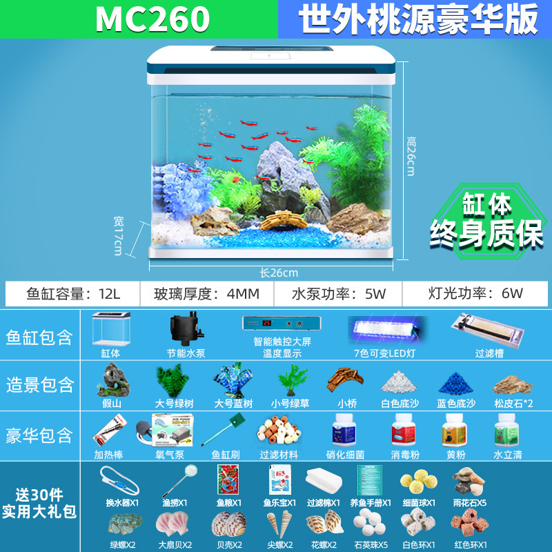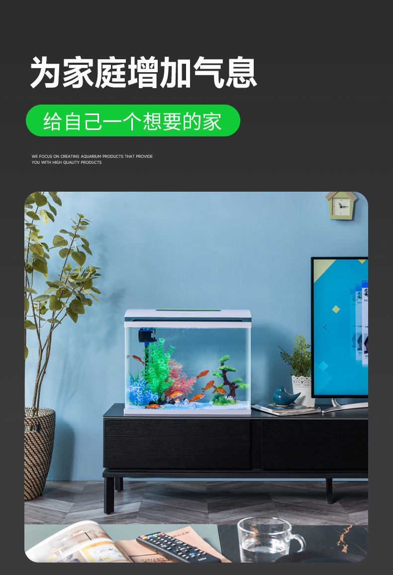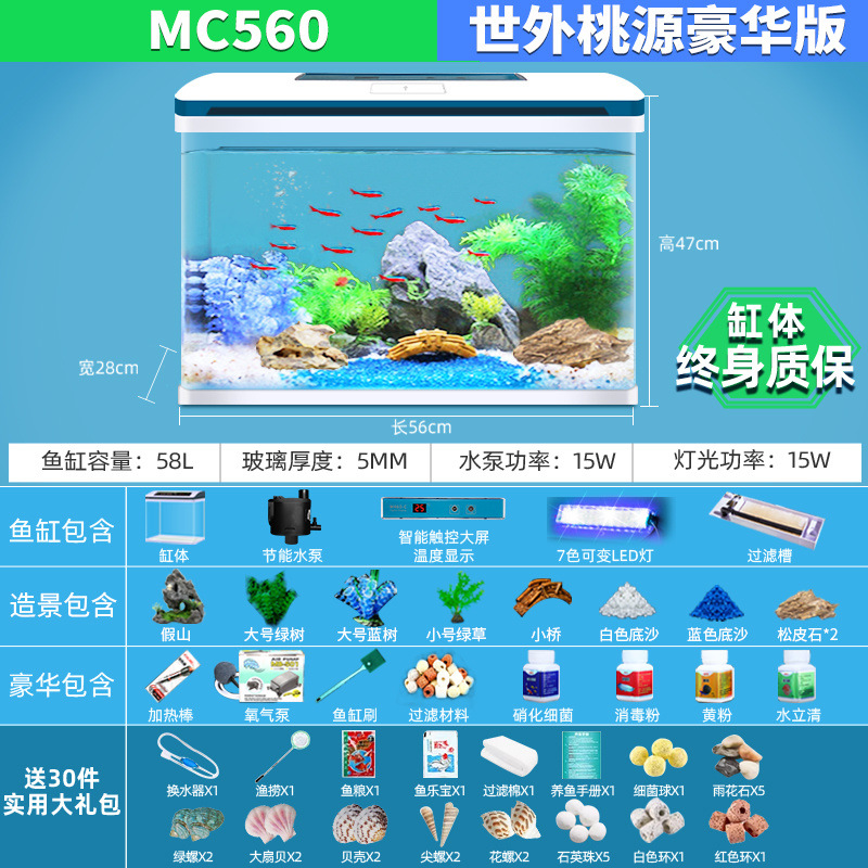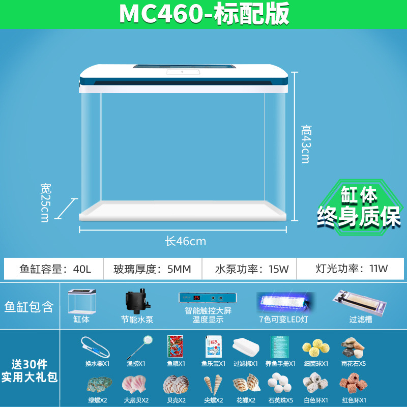 물고기 탱크 거실 가정용 작은 데스크탑 풍경 게으른 물 무료 유리 물고기 탱크 수족관 생태 금붕어 탱크스토어 가기