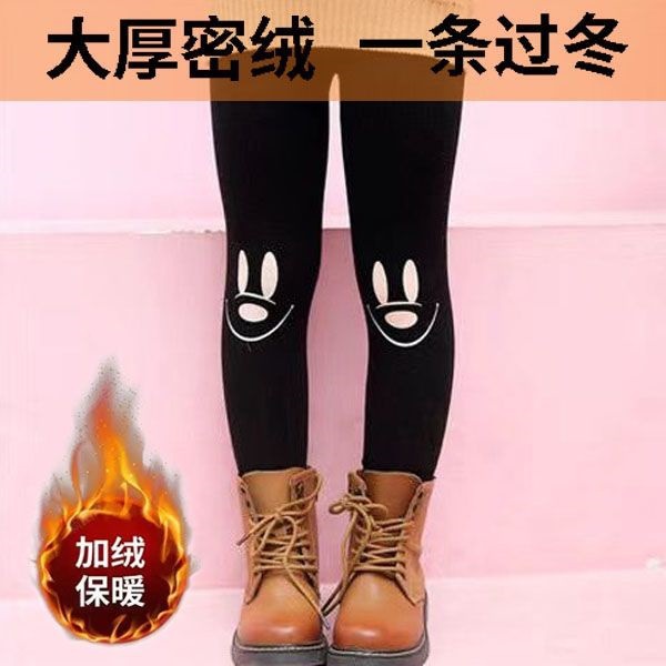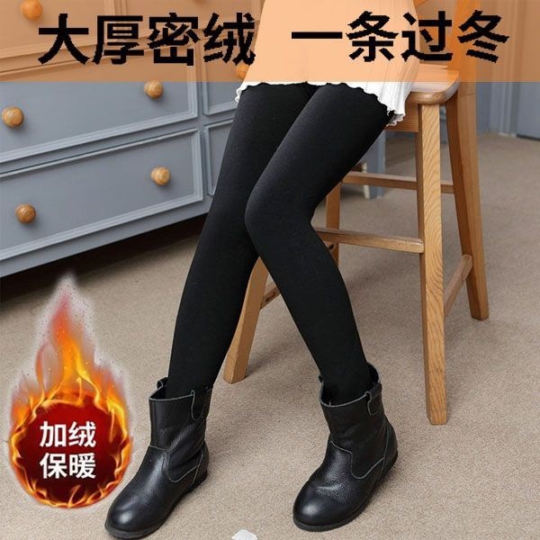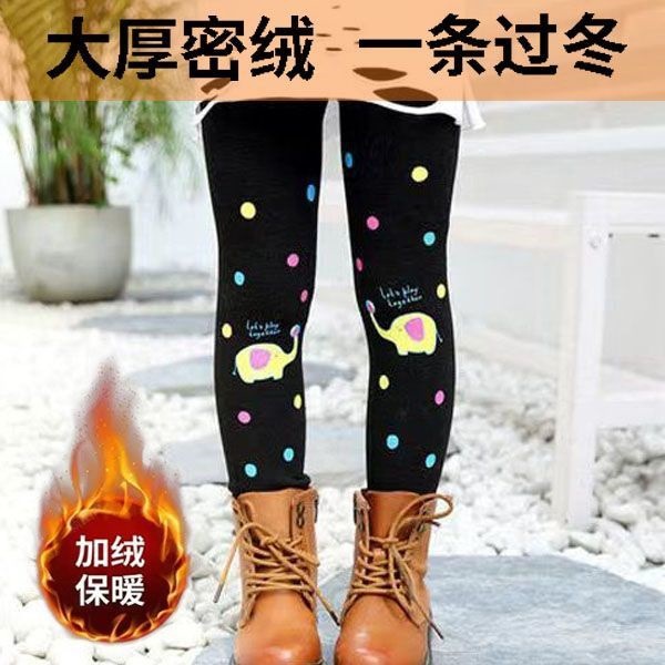 소녀들의 레깅스 기모 두꺼운 따뜻한 가을과 겨울 코튼 바지 아기 발 착용 아동복 원피스 바지