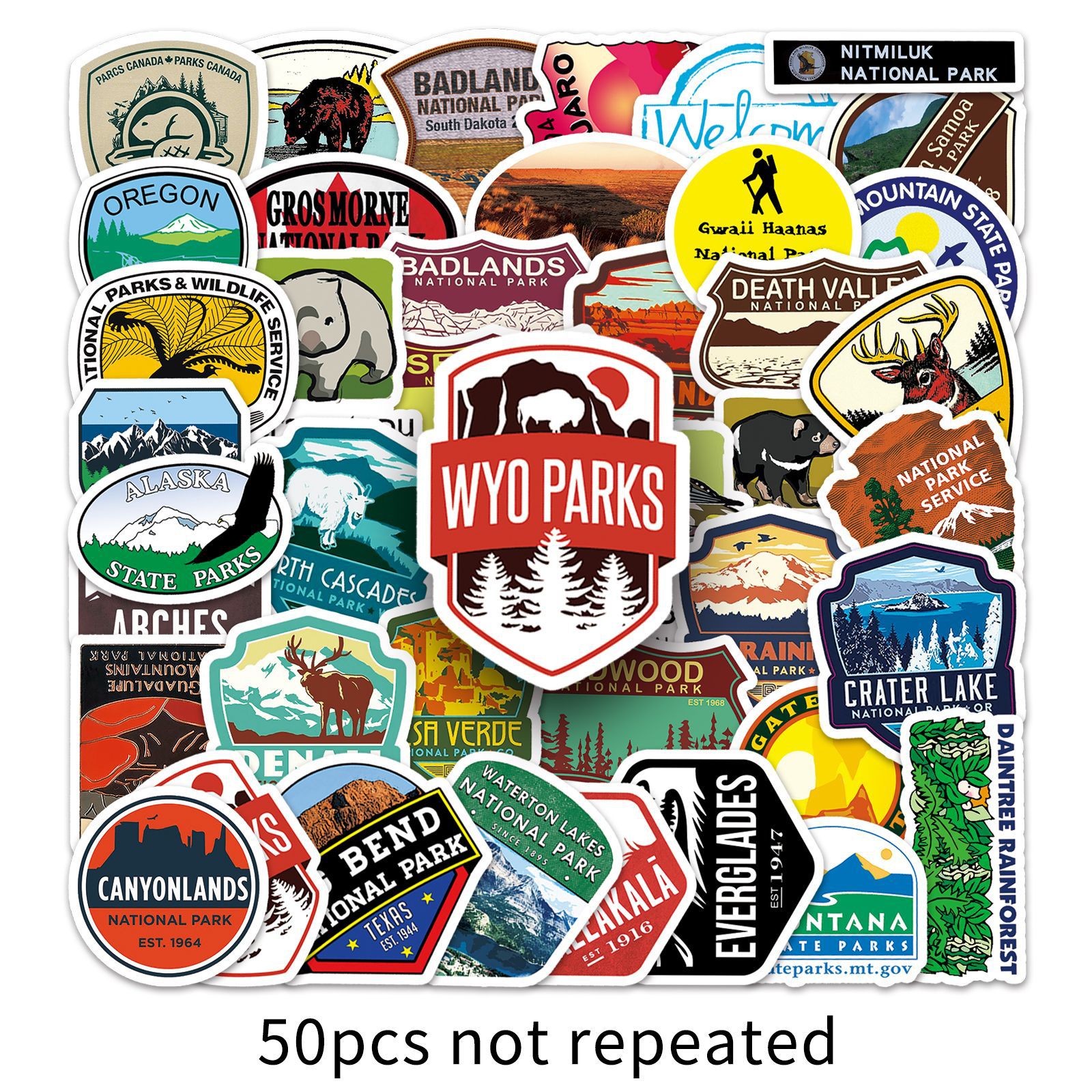 50 국립 공원 아이콘 스티커 경치 명소 여행 카드 방수 장식 저널 북 스티커