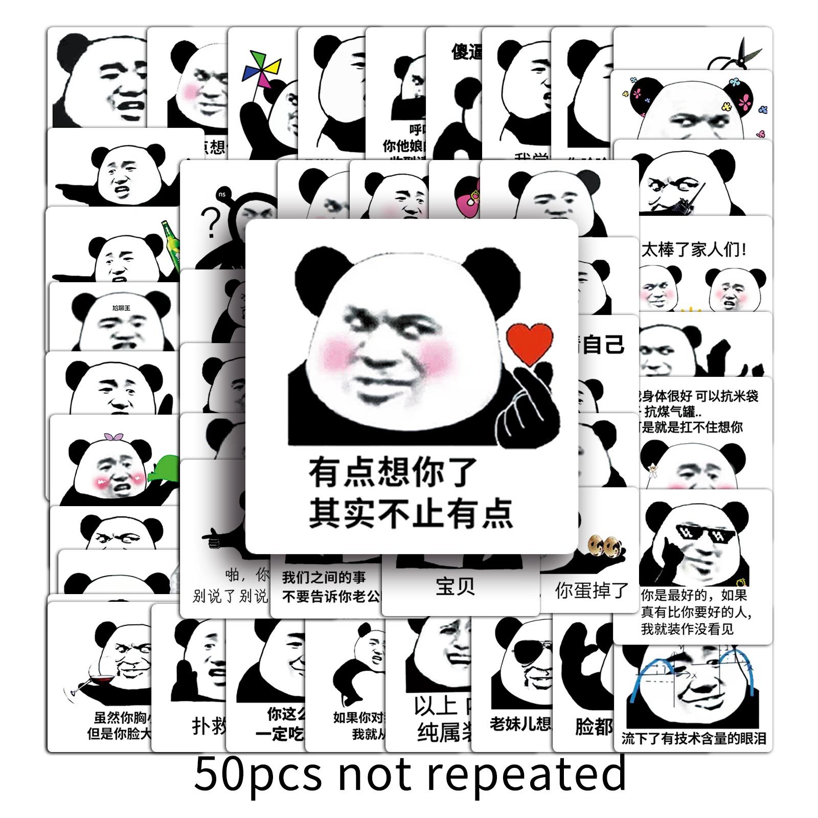50 팬더 헤드 표현 가방 스티커 재미 재미있는 창조적 인 방수 장식 손 계정 휴대 전화 태블릿 스티커스토어 가기