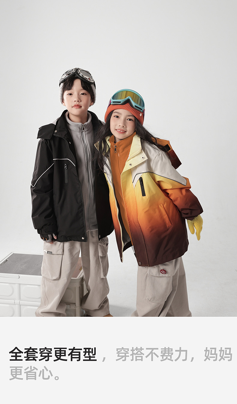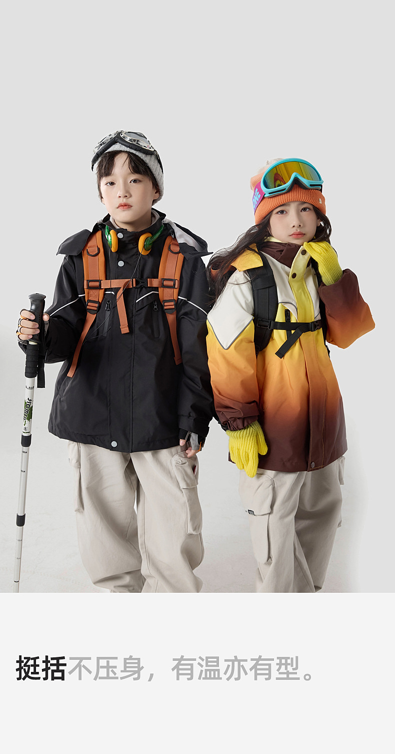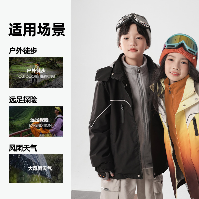 新国标90白鸭绒男童冲锋衣羽绒服两件套 冬季户外儿童羽绒外套
