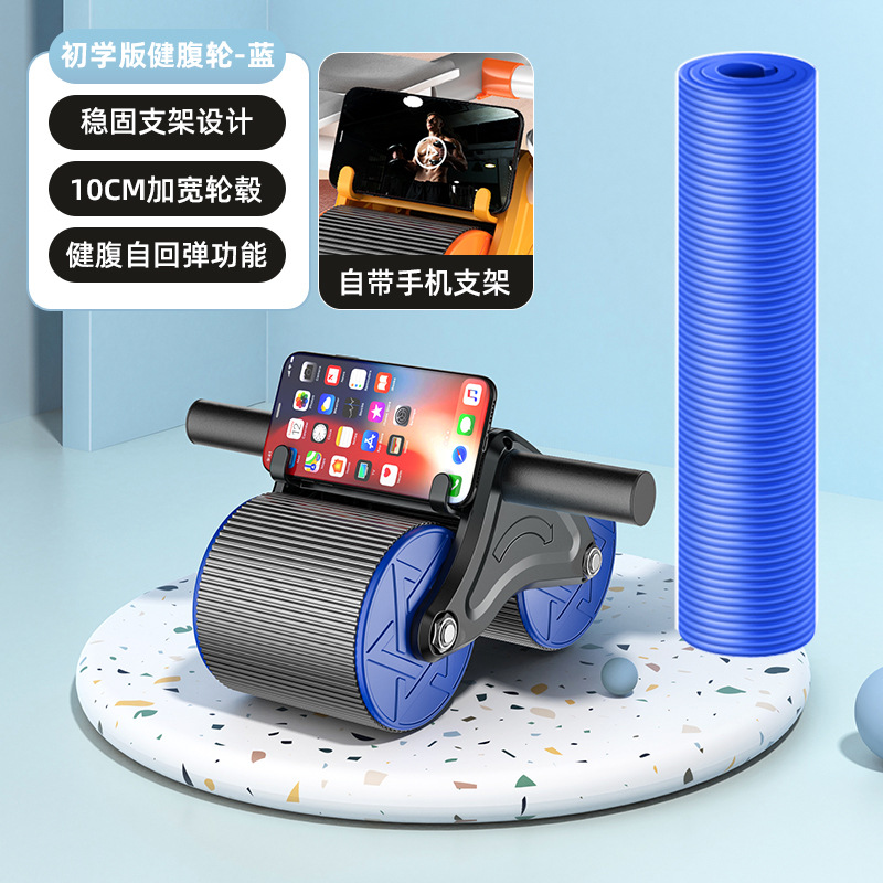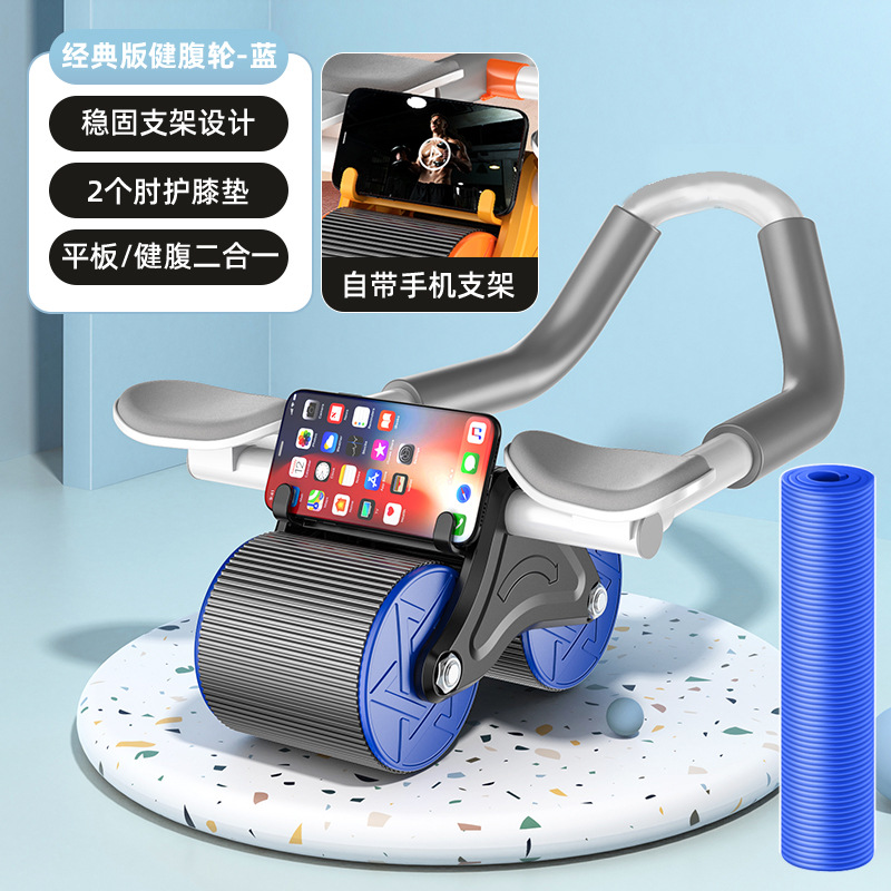 • 블루 요가 매트 + [쿨 스타일] 자동 리바운드 복부 휠 + 전문 무릎 매트