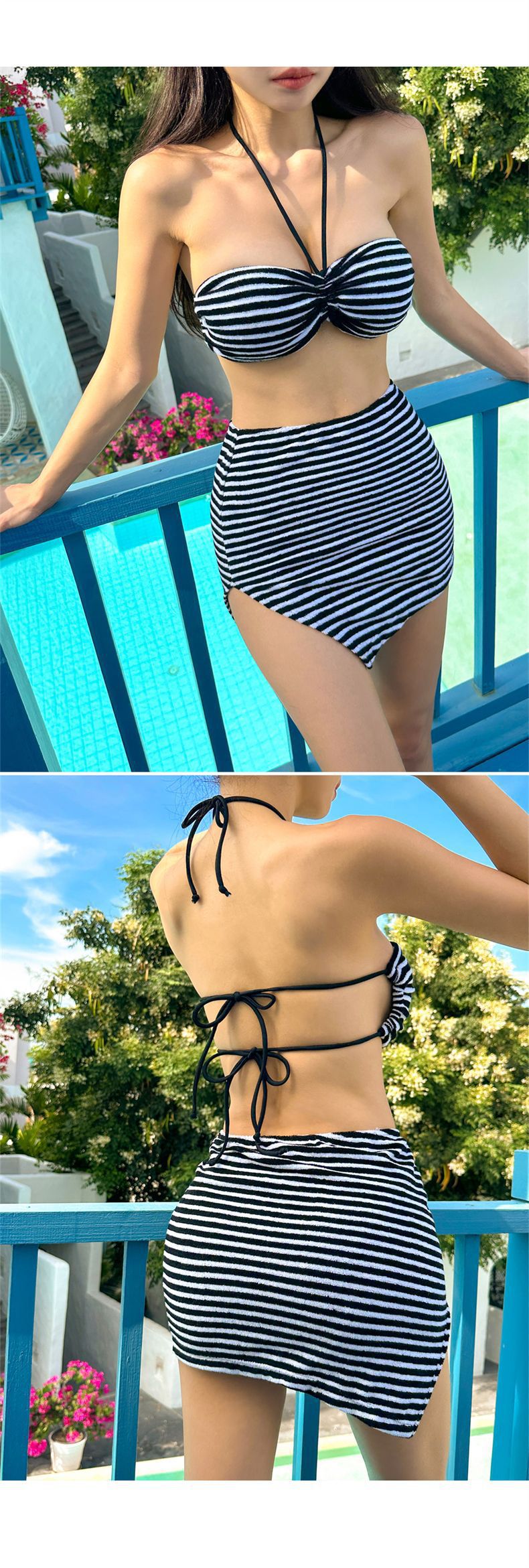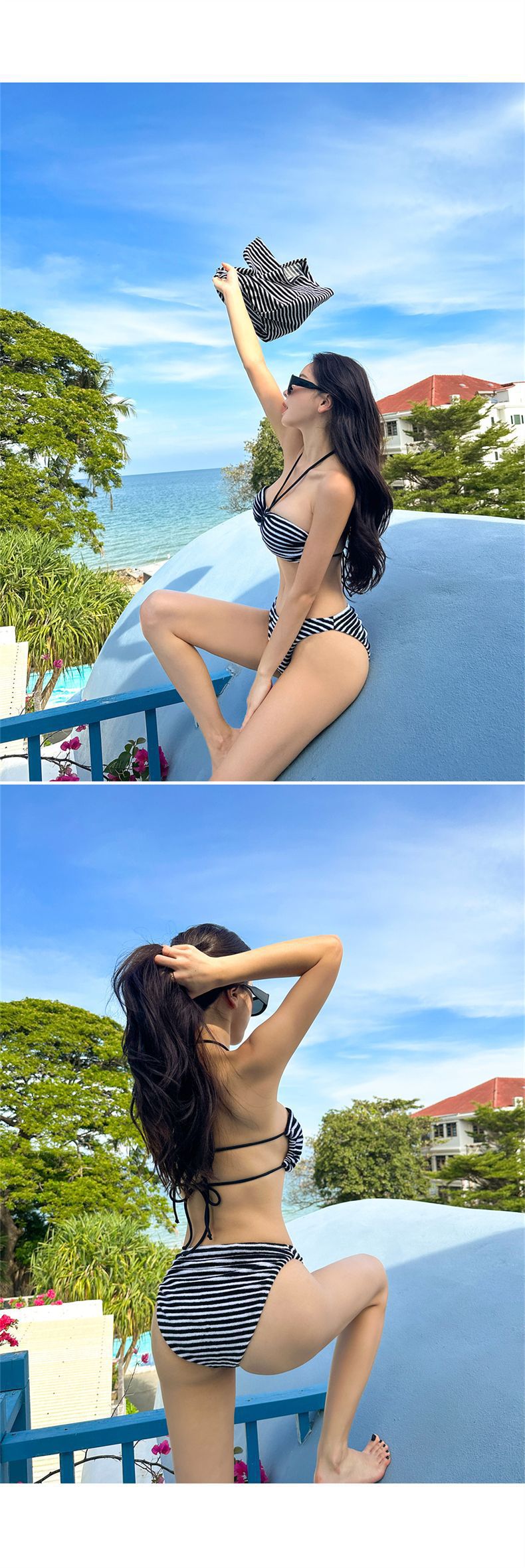 2025 여자 줄무늬 끈이없는 비키니 스트랩 3 점 Halter 비키니 스파이스 걸스 순수한 욕망 스타일 분할 수영복 여성
