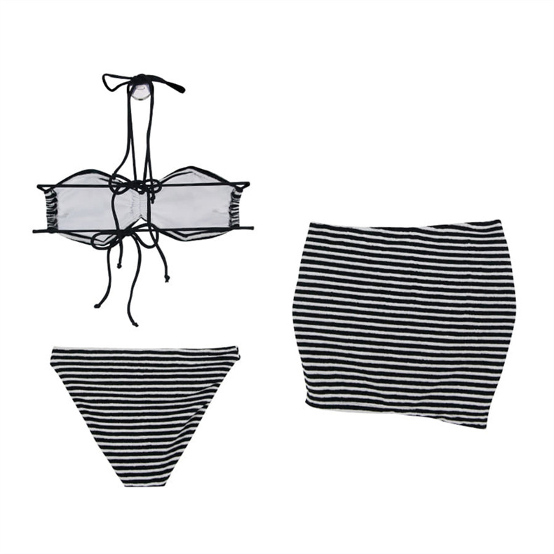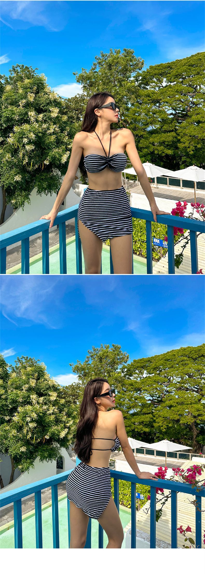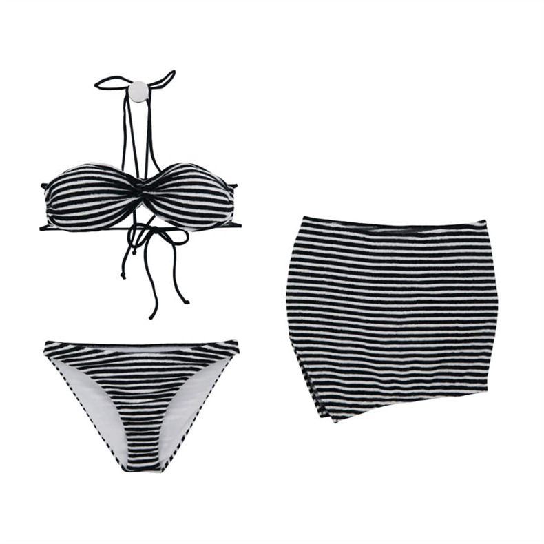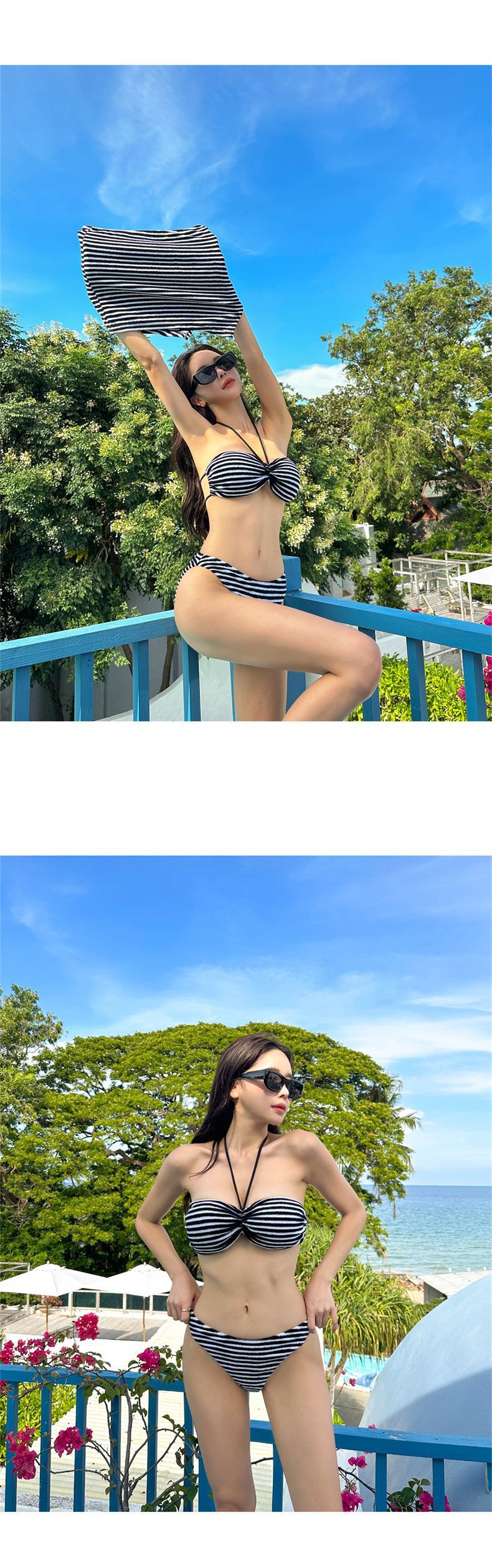 2025 여자 줄무늬 끈이없는 비키니 스트랩 3 점 Halter 비키니 스파이스 걸스 순수한 욕망 스타일 분할 수영복 여성스토어 가기