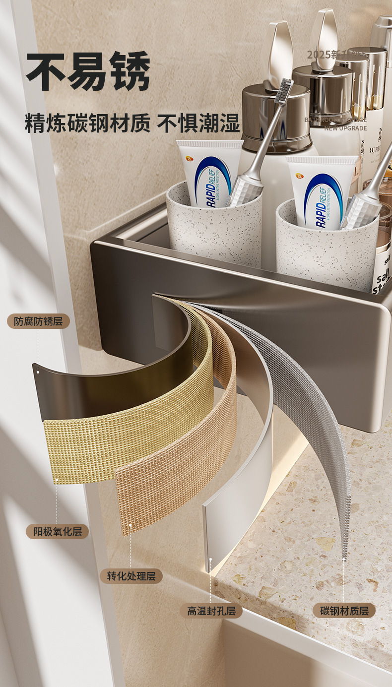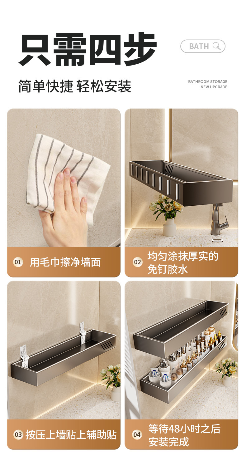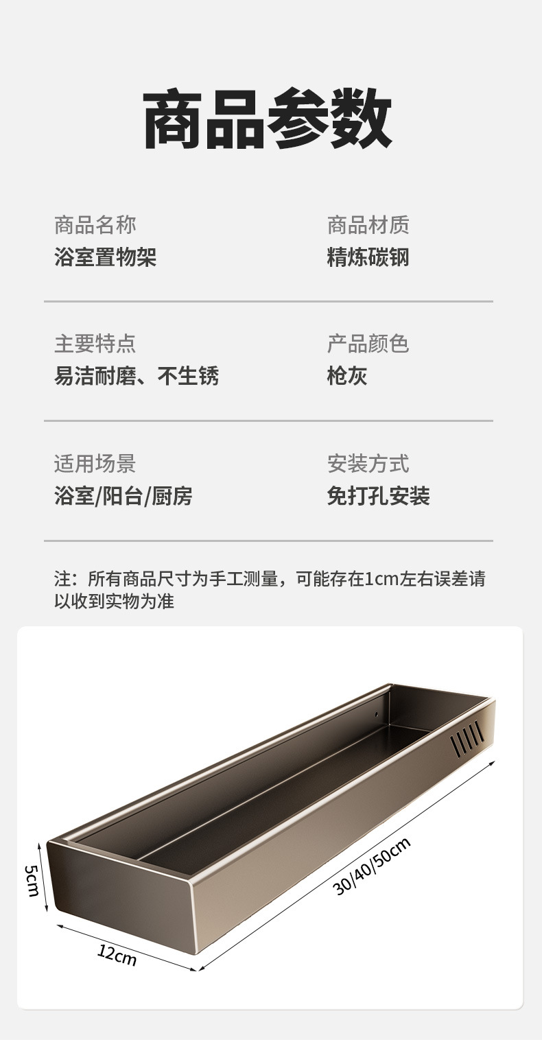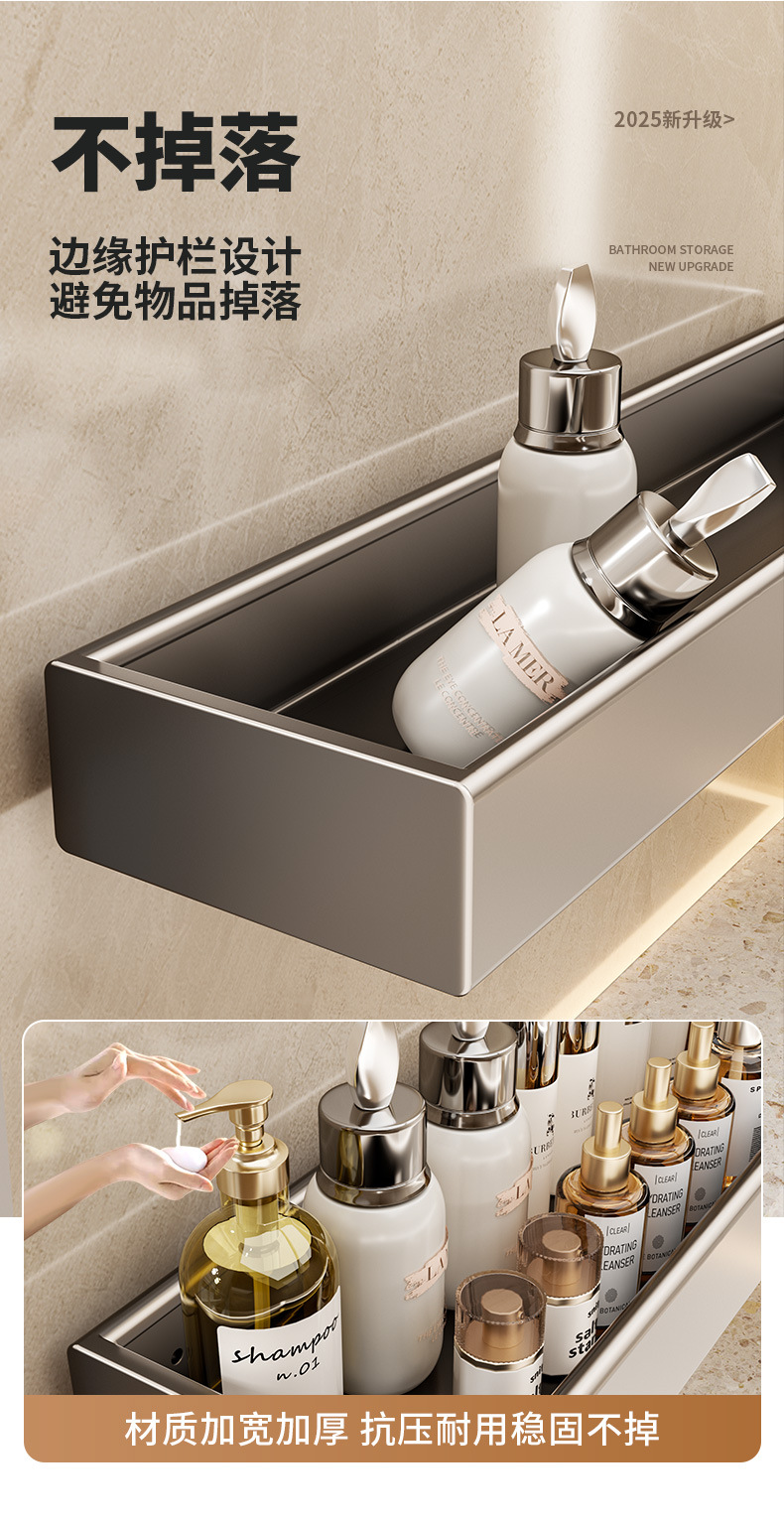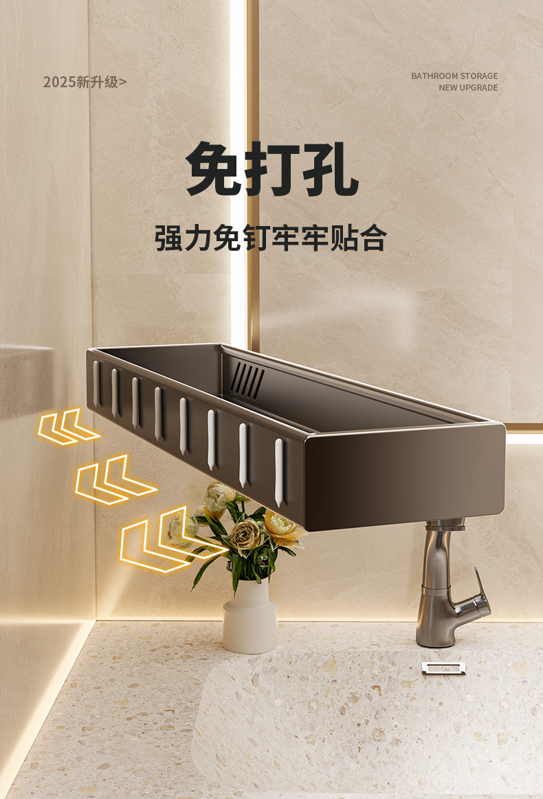 구멍이 없는 욕실 보관함 다기능 벽걸이형 보관함 건 그레이 두꺼운 욕실 보관함