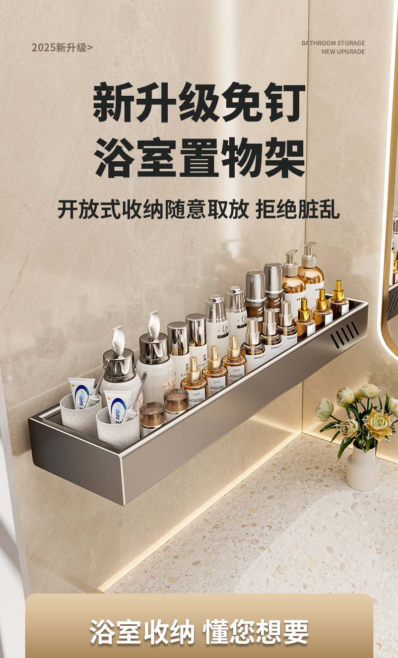 구멍이 없는 욕실 보관함 다기능 벽걸이형 보관함 건 그레이 두꺼운 욕실 보관함스토어 가기