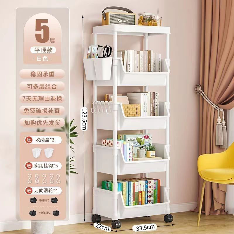 책장 이동식 보관 랙 다층 보관 랙 가정용 어린이 장난감 트롤리 바닥 스탠딩 데스크탑 간단한 책장