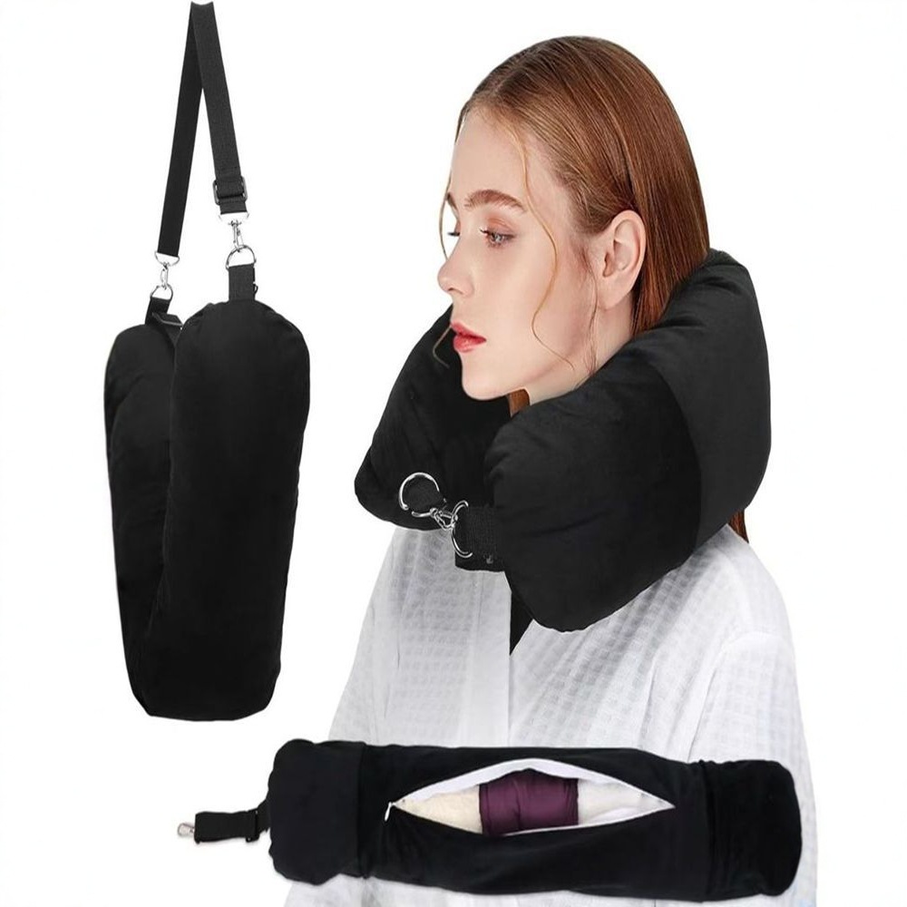 베개 가능한 옷 비행기 베개 편안한 휴대용 추가 수하물 여행 베개 벨벳 목 베개 보관 가방