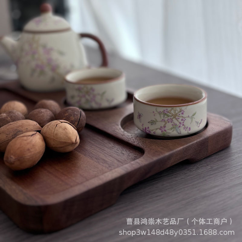 크로스보더 원목 티 드링크 크리에이티브 원티드레인 트레이 커피숍 원두드레인 컵 트레이 원목 3홀 우드 트레이스토어 가기