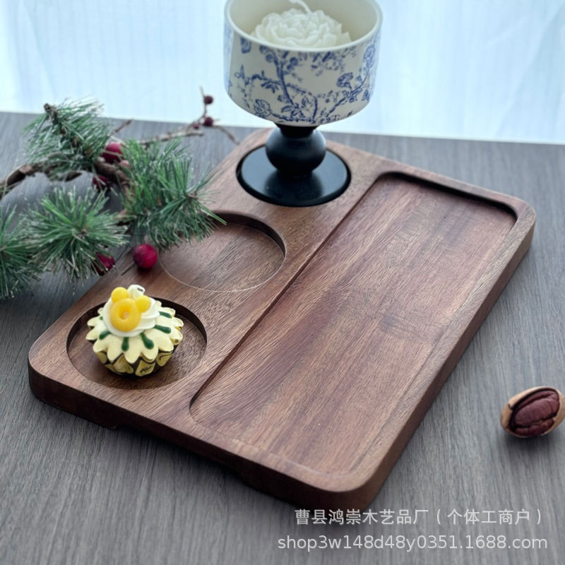 크로스보더 원목 티 드링크 크리에이티브 원티드레인 트레이 커피숍 원두드레인 컵 트레이 원목 3홀 우드 트레이