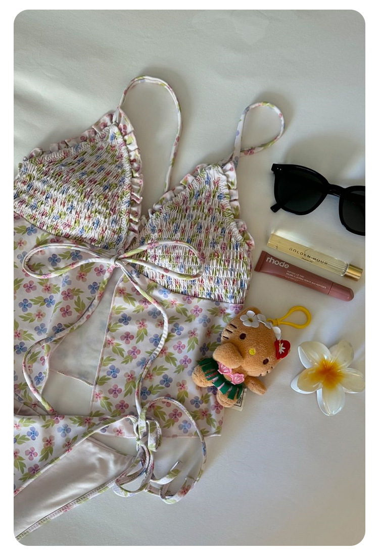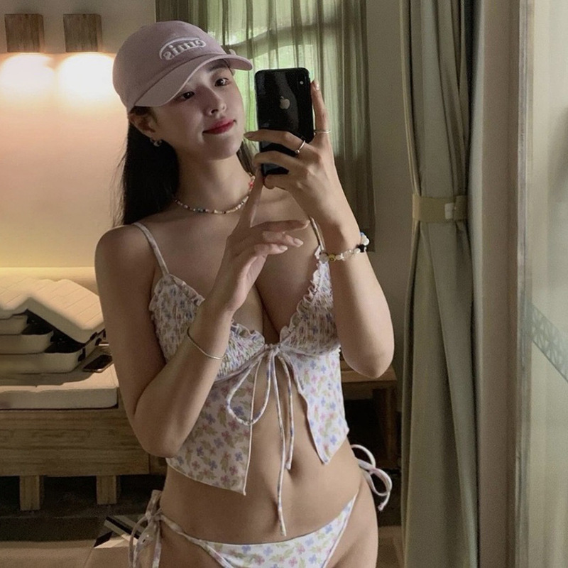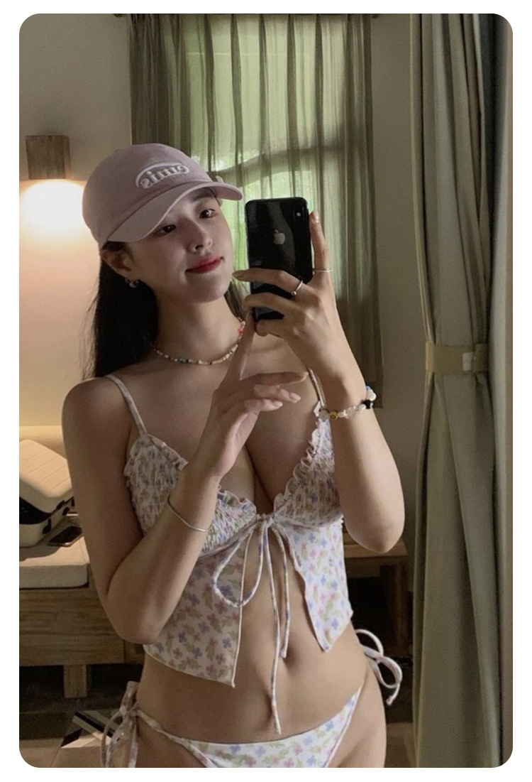 2025 새로운 핫 걸스 일본 비키니 섹시 백리스 작은 가슴 달콤한 꽃 분할 삼각형 수영복 여성스토어 가기