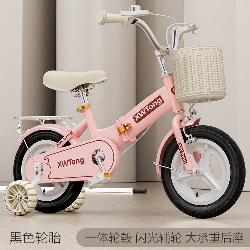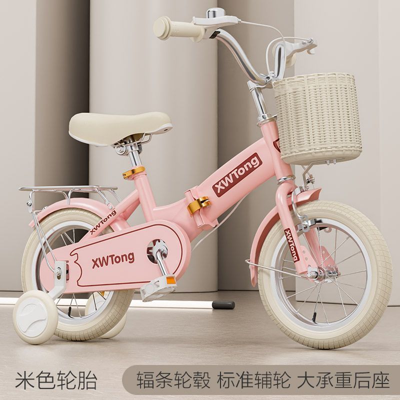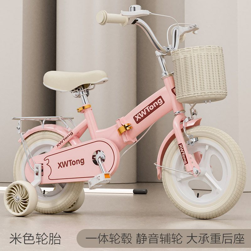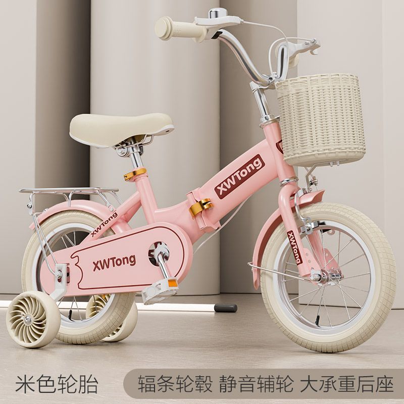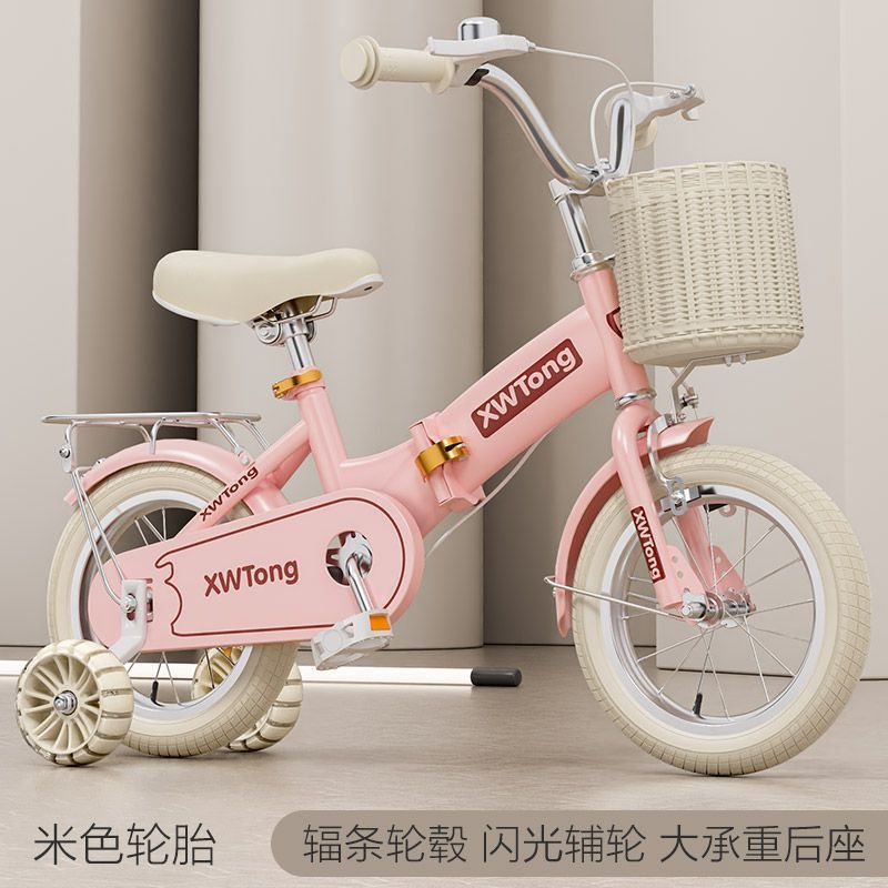 • 키(95-110cm)에 적합한 14inch + 모피 핑크 폴딩 [라이스 타이어] 넓어진 사일런트 휠 + 뒷좌석 + 선물 가방