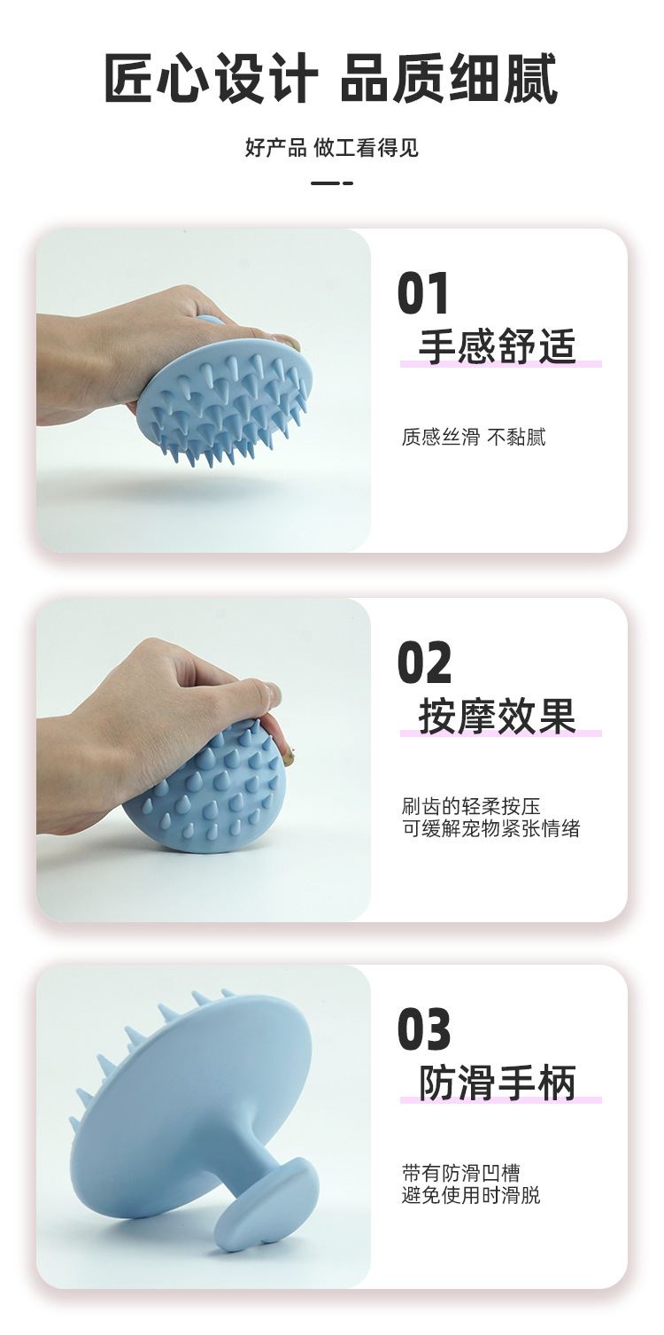 애완 동물 실리콘 샴푸 빗, 습식 및 건식 마사지 빗, 새로운 색상의 실리콘 애완 동물 빗스토어 가기