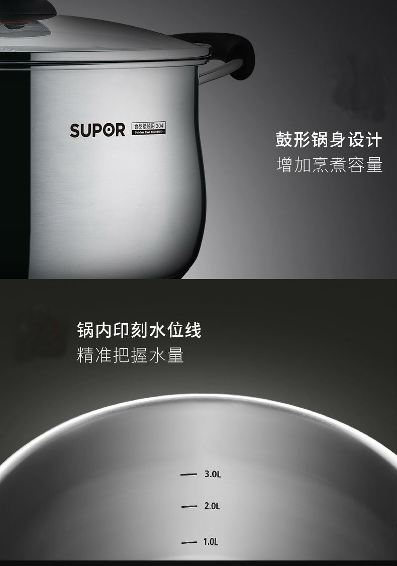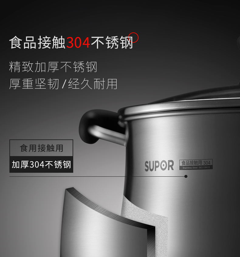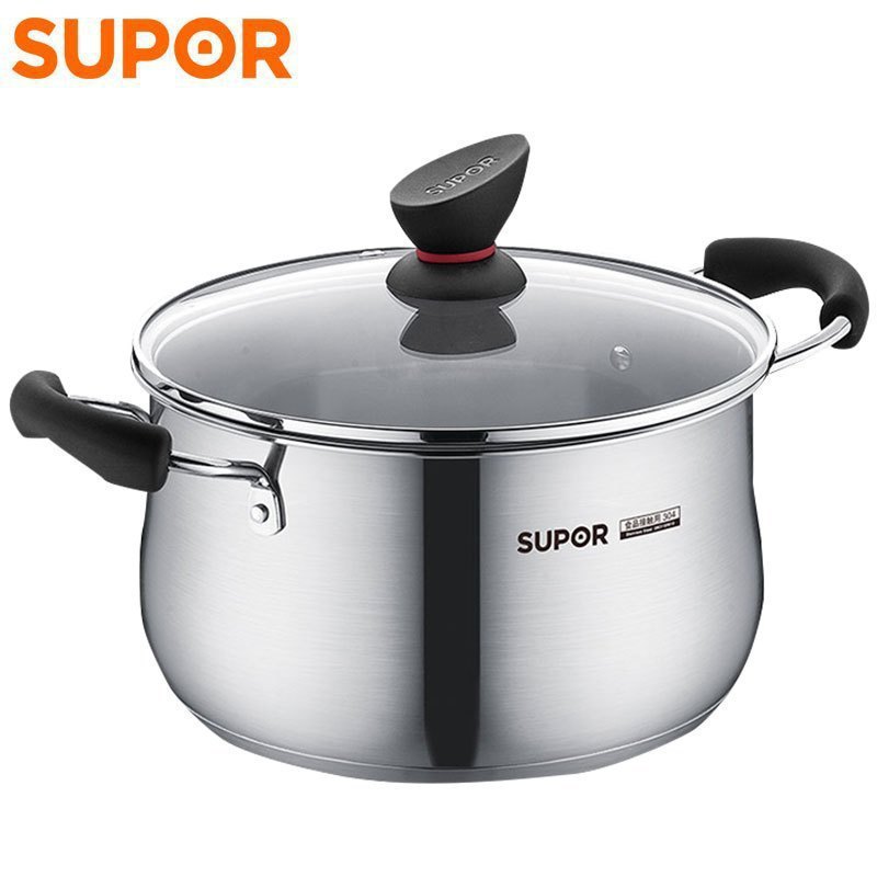 Suppor Soup Pot 가정용 20cm 코팅되지 않은 식품 등급 스테인레스 스틸 화합물 바닥 수프 포트 유니버설 유도 쿠커 오픈 파이어
