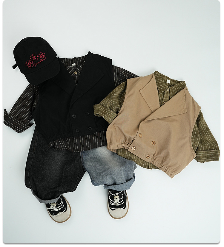 기질 이른 봄 어린이 착용 아기 소년 및 소녀 옷깃 조끼 레트로 서양식 100% 면 어린이 허리 코트 재킷스토어 가기