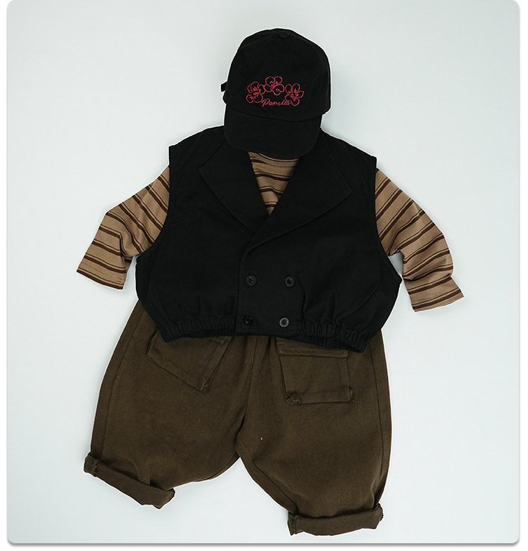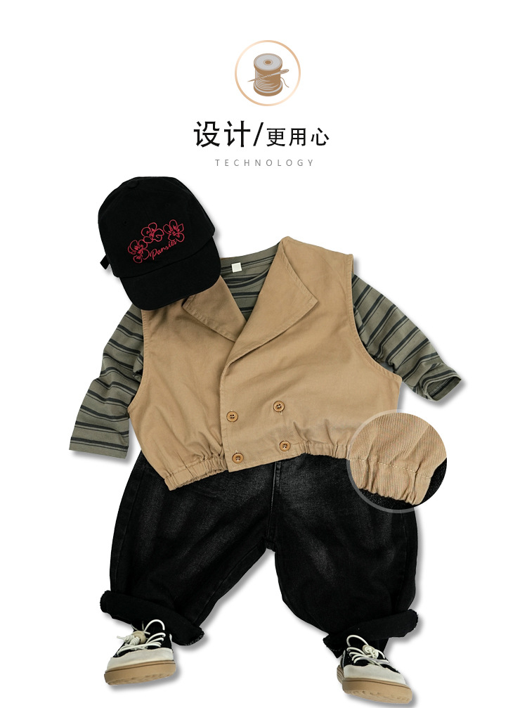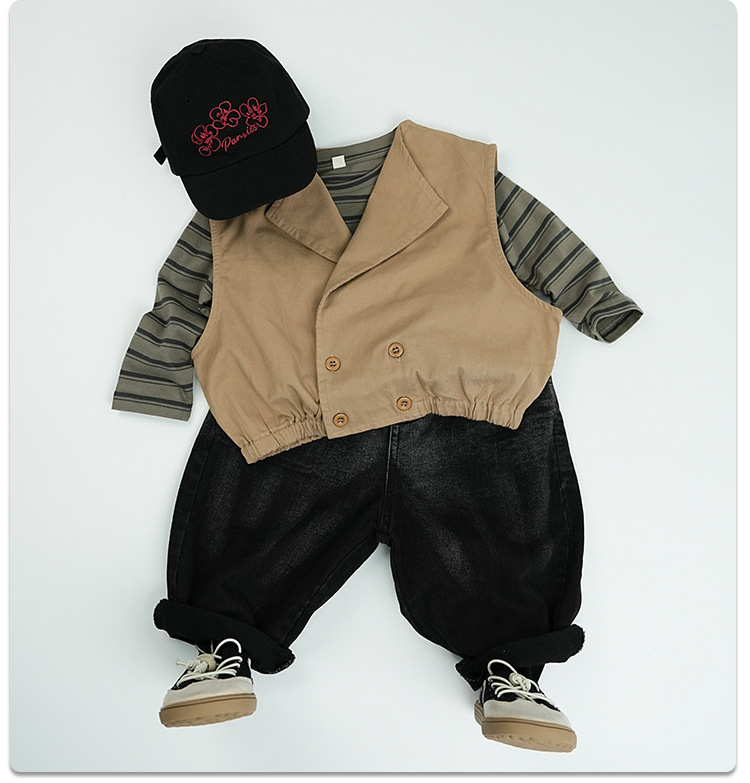 기질 이른 봄 어린이 착용 아기 소년 및 소녀 옷깃 조끼 레트로 서양식 100% 면 어린이 허리 코트 재킷