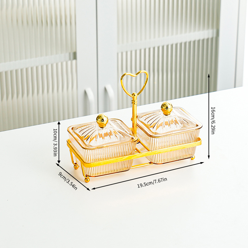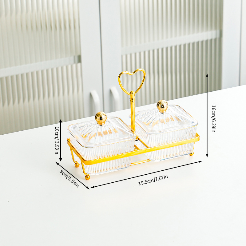 • 골든 피치 하트 스퀘어 프레임 2 재 접시 골드 비즈