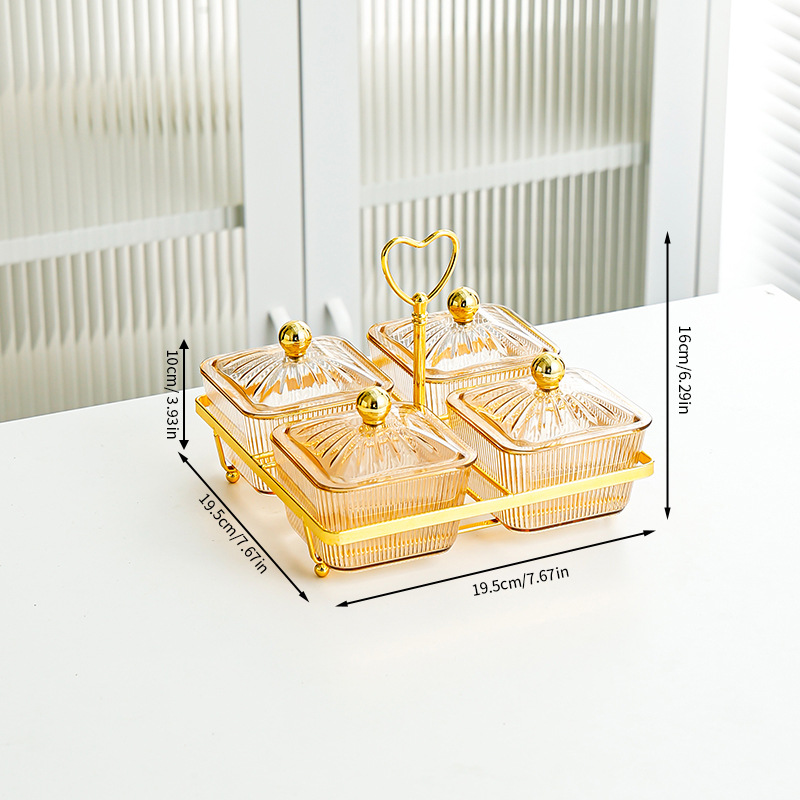 • 골든 피치 하트 스퀘어 프레임 4 재 접시 골드 비즈