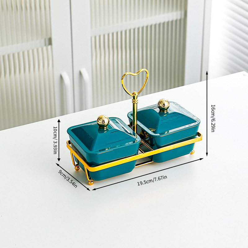 • 황금 복숭아 하트 사각 프레임 2개의 도자기 흰색 접시 금구슬