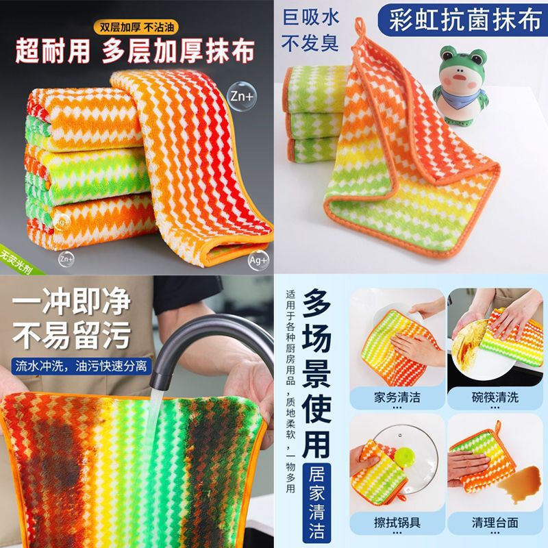 레인보우 걸레, 게으른 사람들을 위한 다채로운 설거지용 천, 물을 흡수하고 기름이 들러붙지 않음, 주방 보푸라기가 없는 가정용 청소 수세미