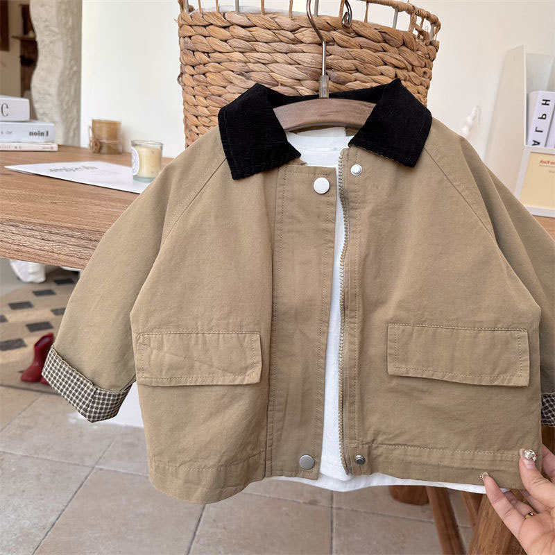 한국 스타일 소년 가을 코트 2025 새로운 인터넷 유행 잘 생긴 어린이 영국 스타일 단색 간단한 재킷스토어 가기