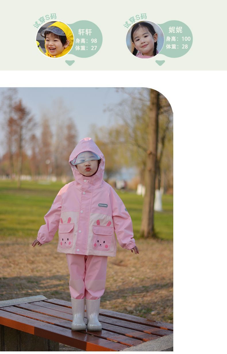 어린이 분할 비옷과 비바지 세트, 방수 초등학생 판초, 유치원 및 학교 전용스토어 가기