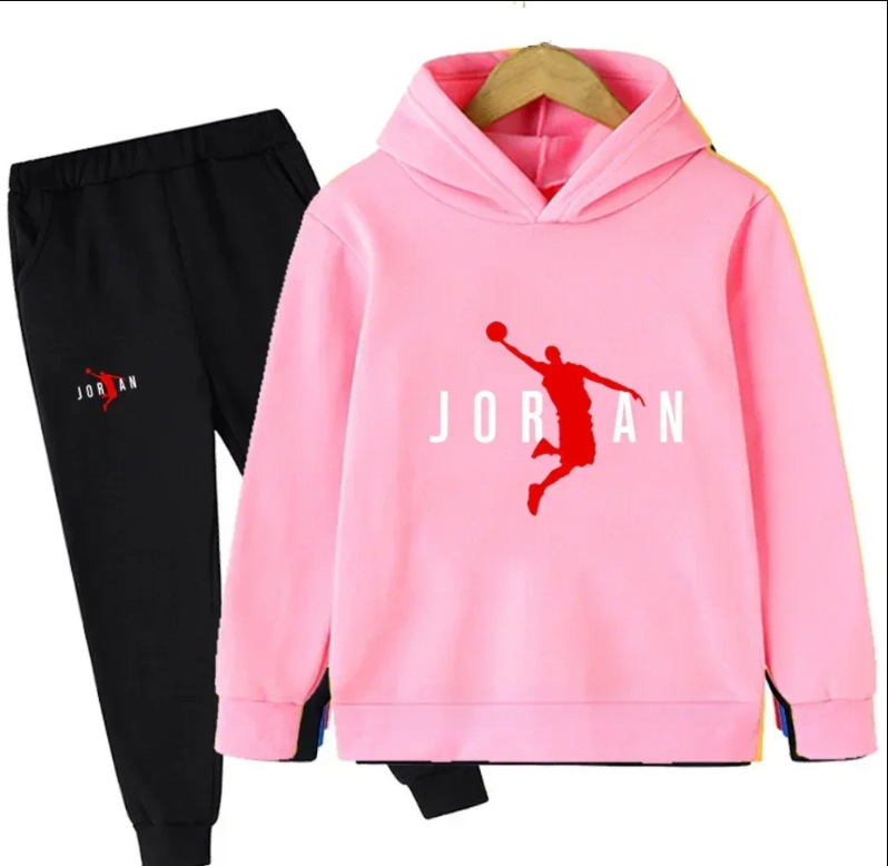국경을 넘는 새로운 어린이 운동복 정장 유럽과 미국의 인기 패션 프린트 후드 정장 탑과 바지 2025