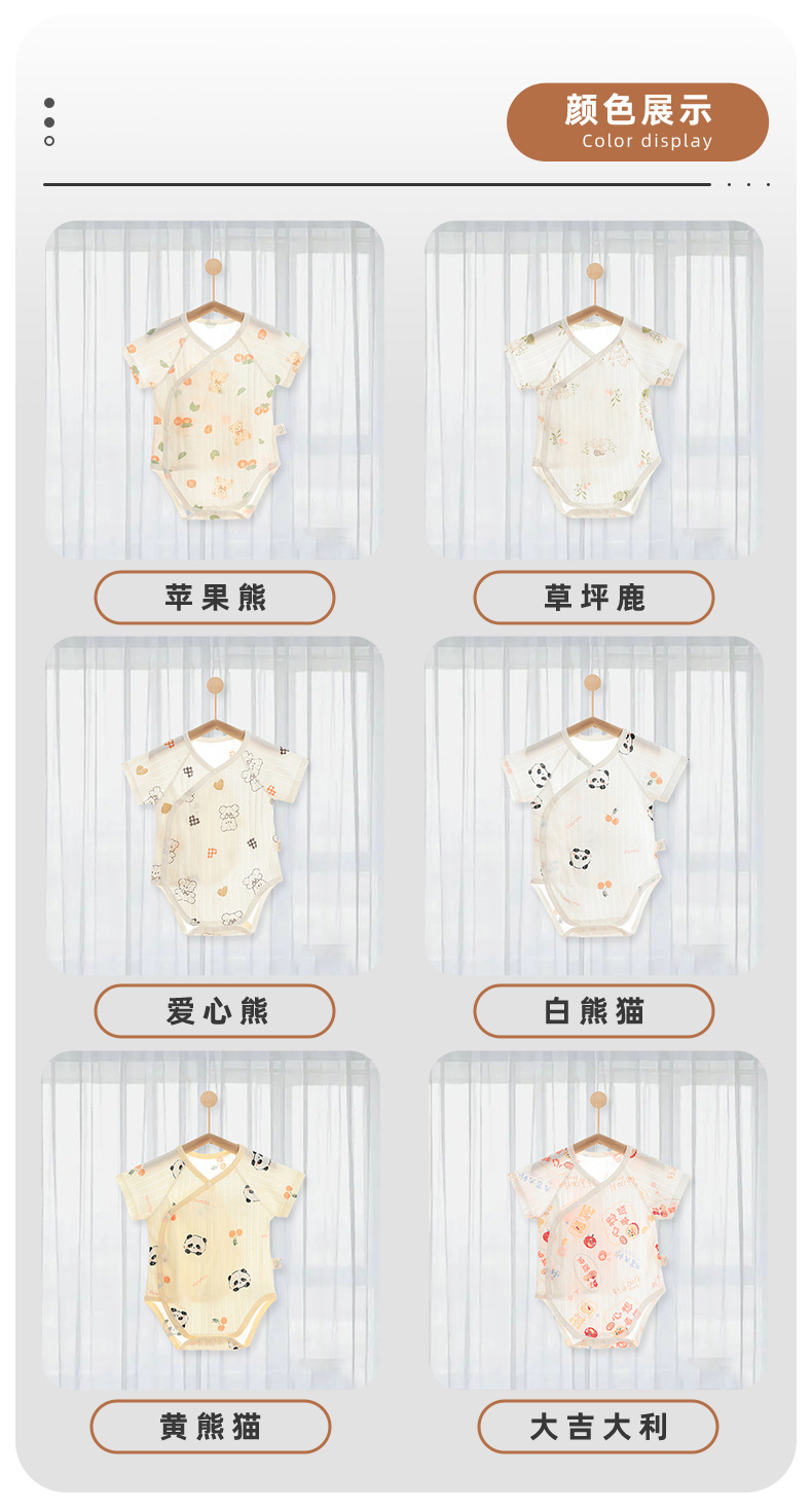 아기의 반팔 가방 세트 여름 얇은 등반 세트 삼각형 모자 신생아의 여름 세트 아기 점프 수트 스님 세트