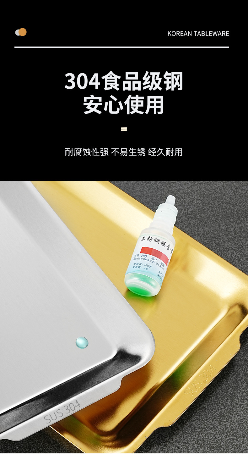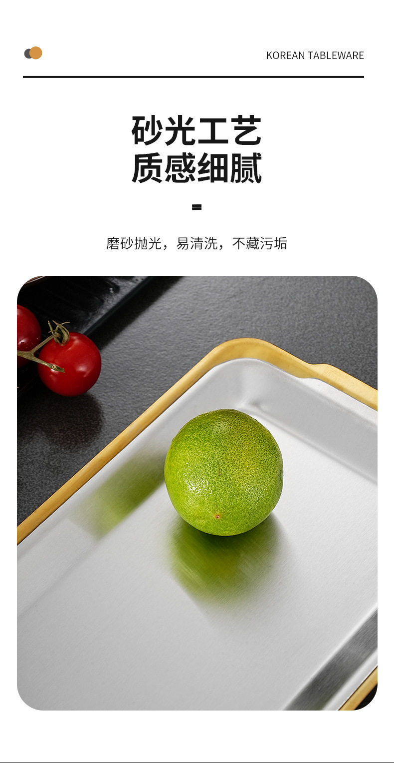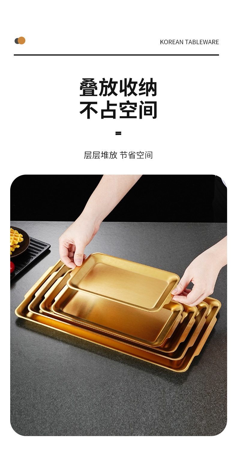 한국식 스테인레스 스틸 스퀘어 플레이트 바베큐 플레이트 바베큐 플레이트 두꺼운 수납 플레이트 가정용 평평한 바닥 직사각형 트레이