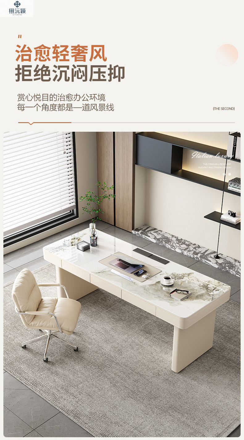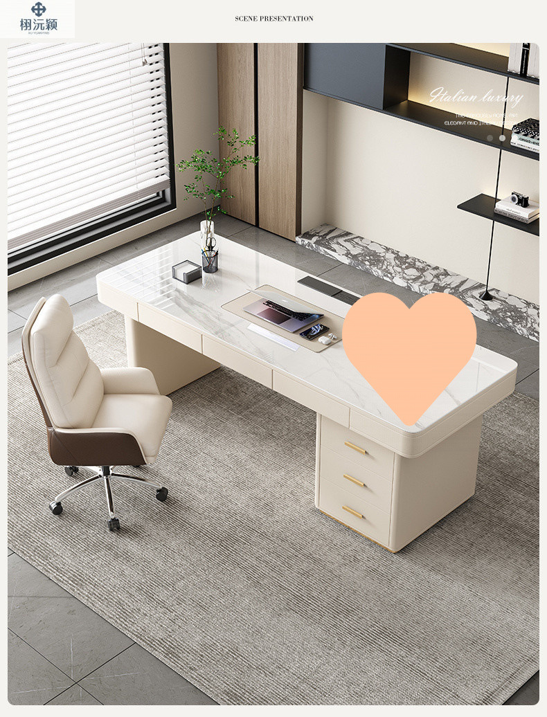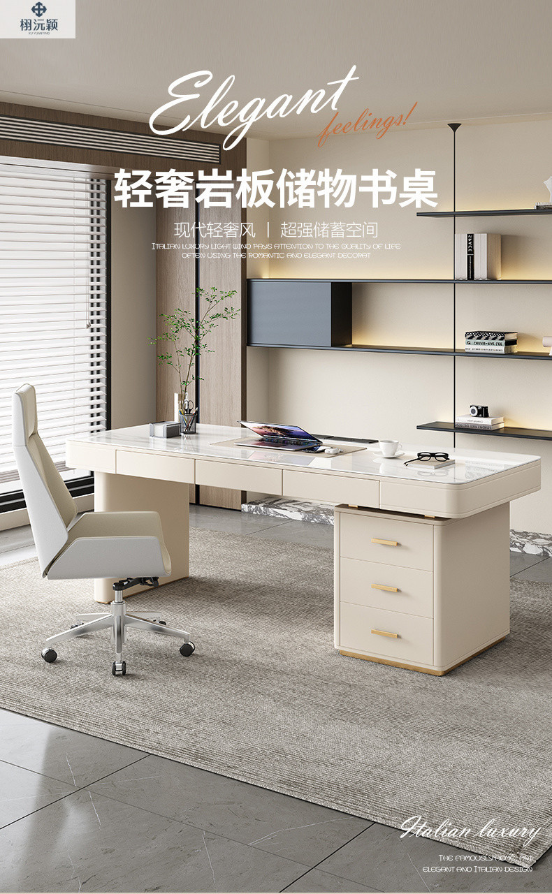 Xuyuanying 2026 이탈리아 스타일의 매우 미니멀한 디자이너의 가볍고 고급스러운 모던 락슬레이트 책상, 가정용 침실, 서재, 사무실 책상스토어 가기