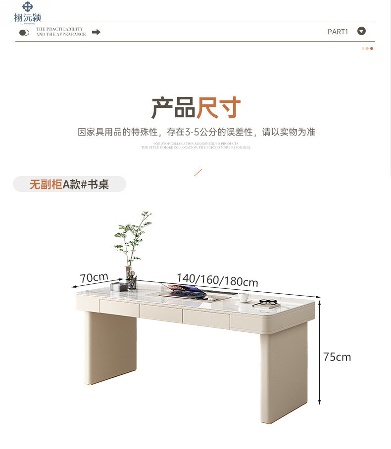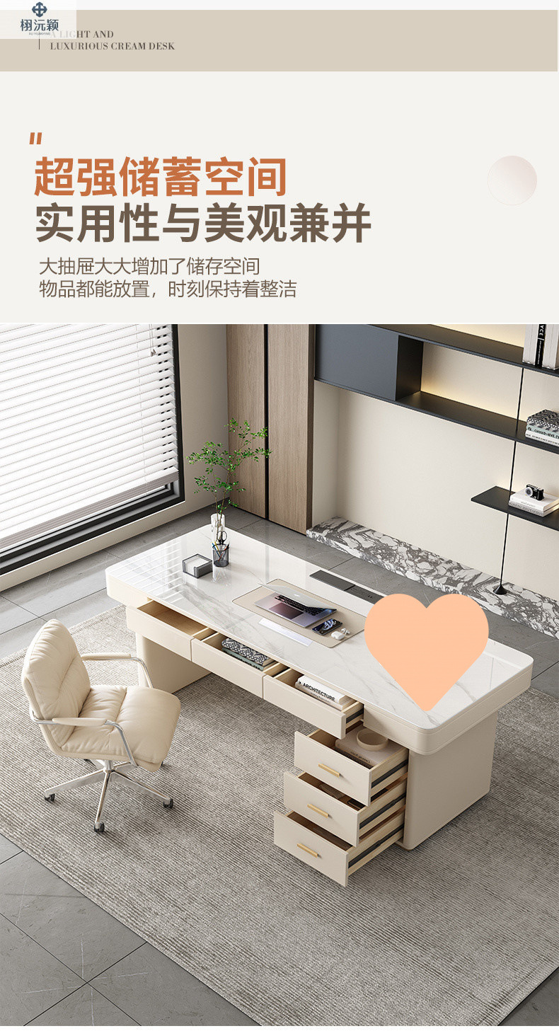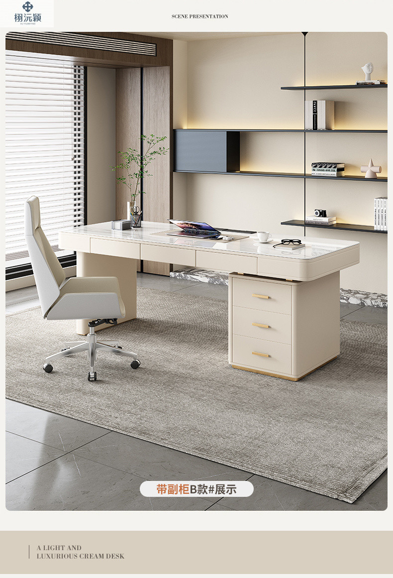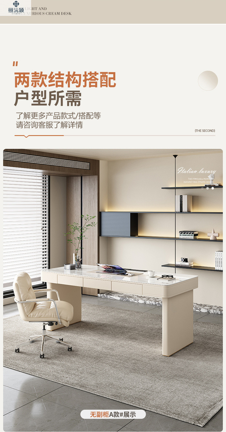 Xuyuanying 2026 이탈리아 스타일의 매우 미니멀한 디자이너의 가볍고 고급스러운 모던 락슬레이트 책상, 가정용 침실, 서재, 사무실 책상스토어 가기