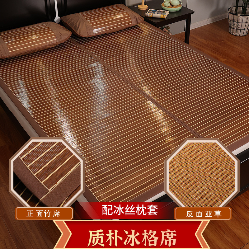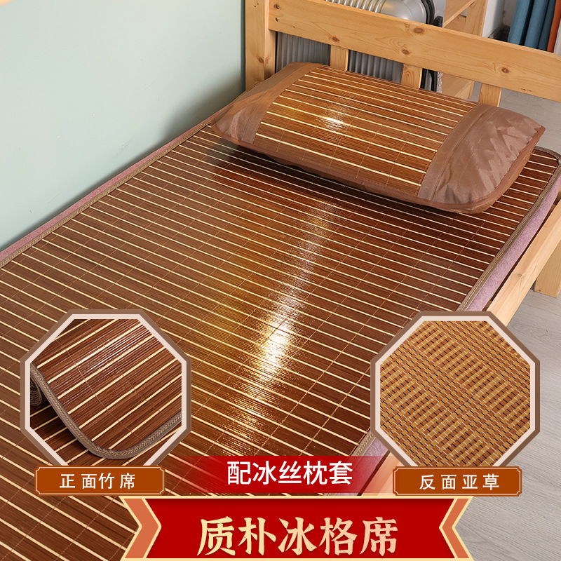 가정용 양면 매트 겨울 및 여름 이중 목적 대나무 매트 아이스 실크 매트 여름 학생 기숙사 단일 접이식 밀짚 매트