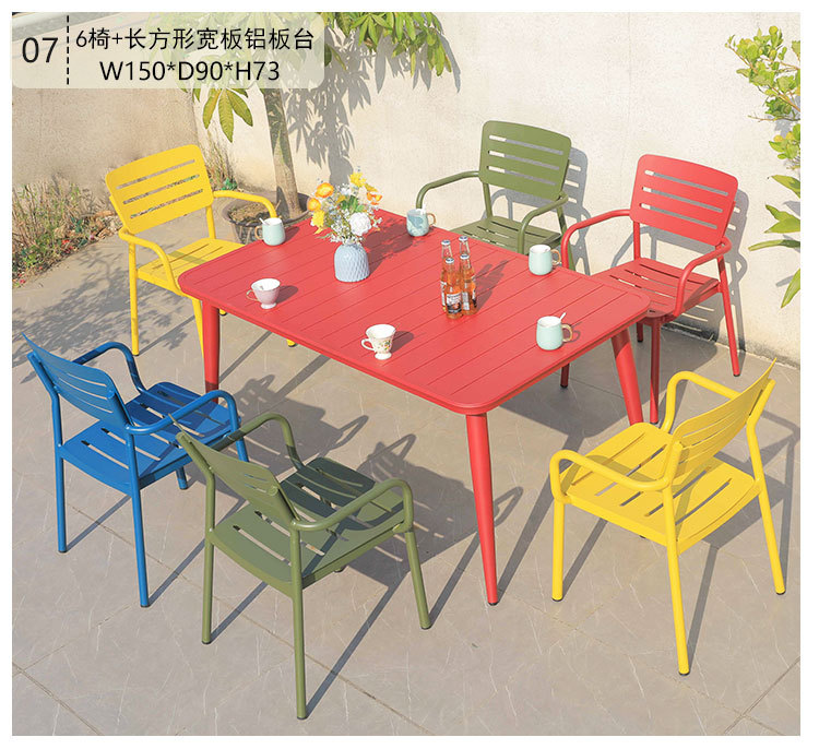 • 조합 7: 의자 6개 + W150*D90*H73 직사각형 와이드 플레이트 알루미늄 플레이트 테이블