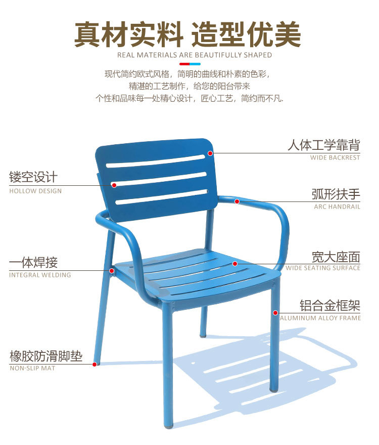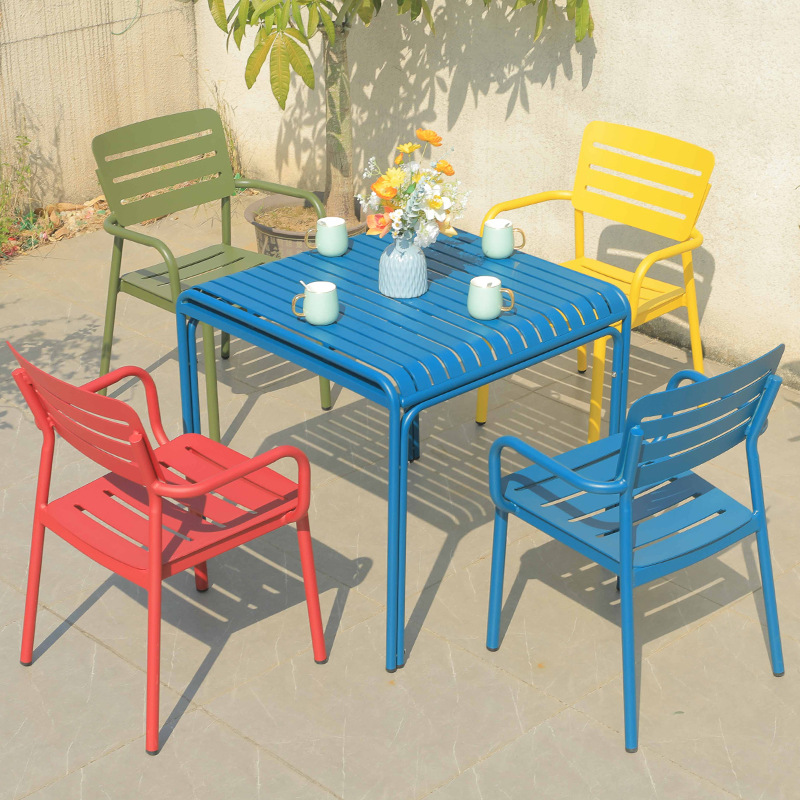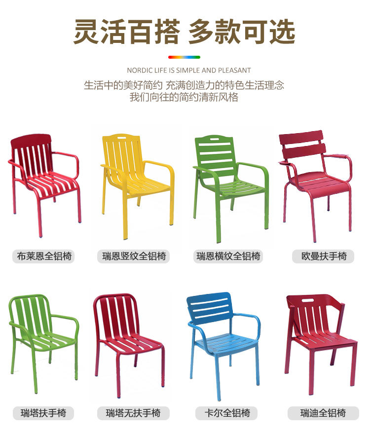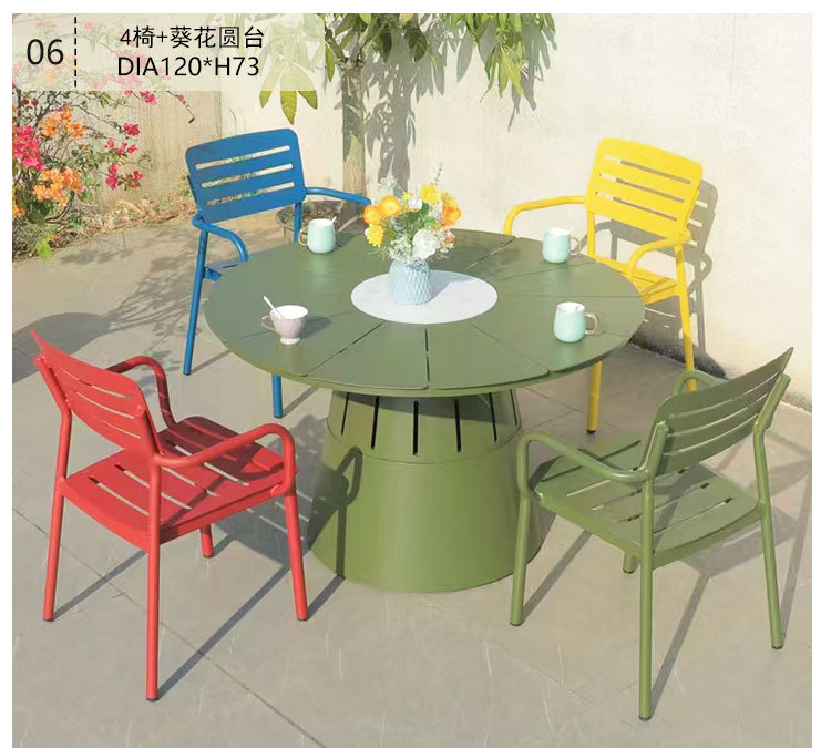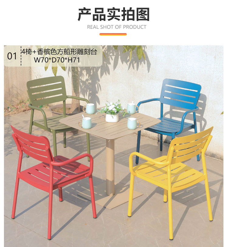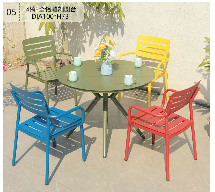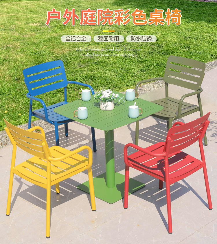 북유럽 발코니 레저 컬러 전체 알루미늄 테이블과 의자 조합 간단한 야외 안뜰 야외 테라스 정원 식탁과 의자