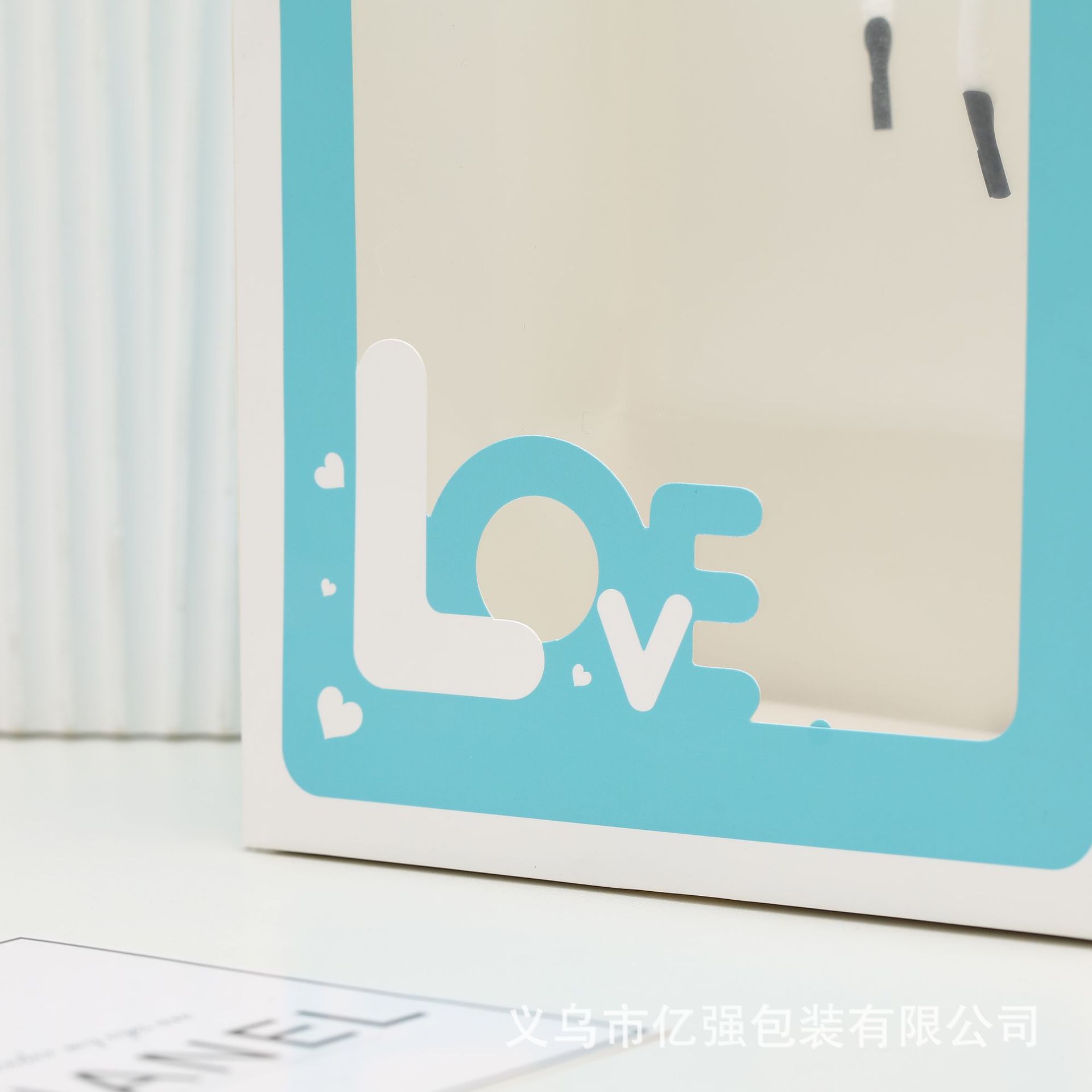 • 파란색 배경과 흰색 프레임 LOVE, 흰색 판지, 중간 크기 20*16*30