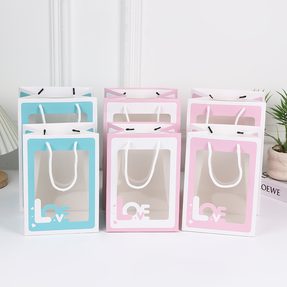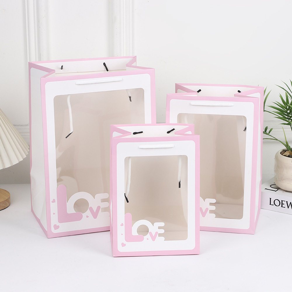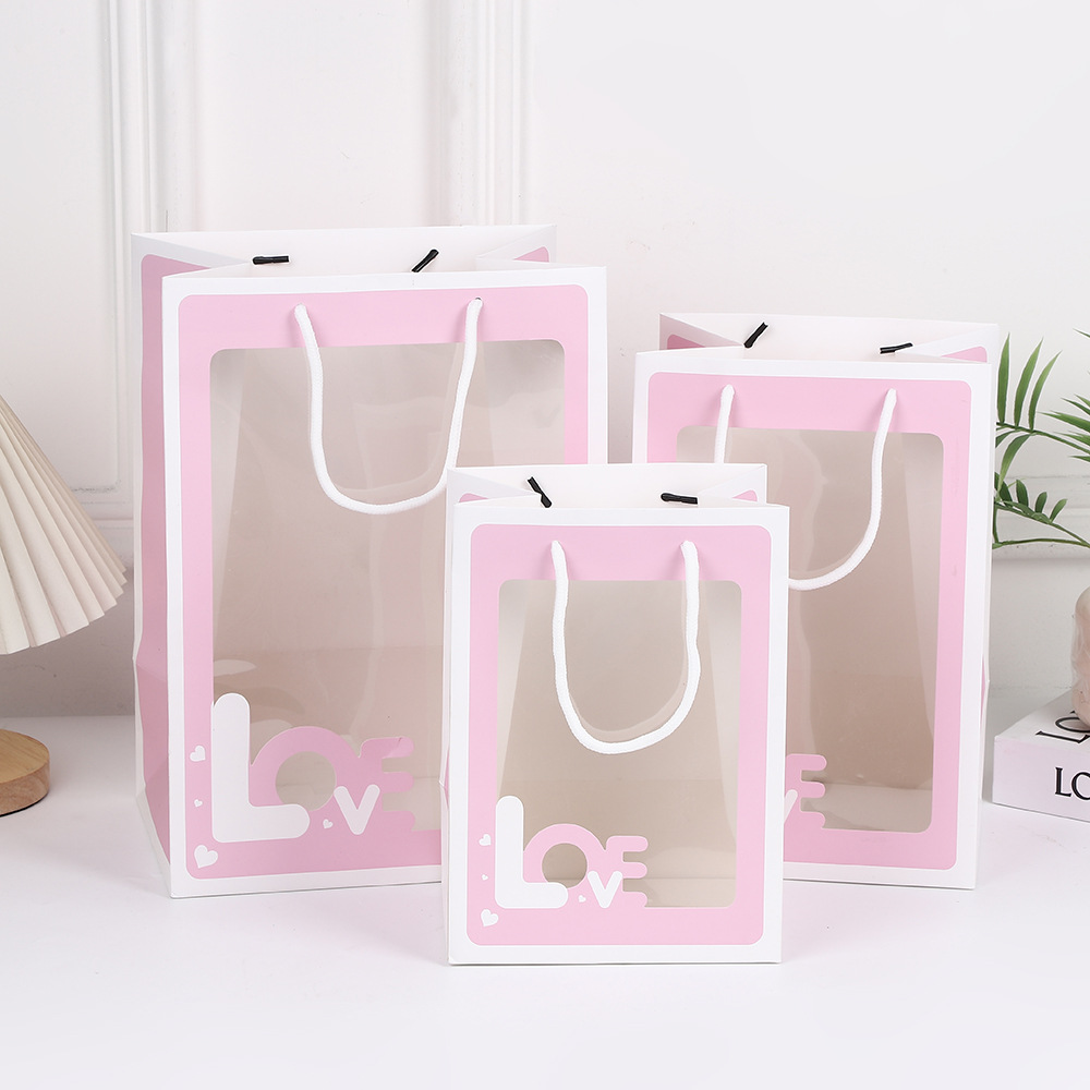 투명 창 핸드백, 선물 포장 가방, 고급 종이 가방, 발렌타인 데이 꽃 선물 가방, 기념품 선물 가방